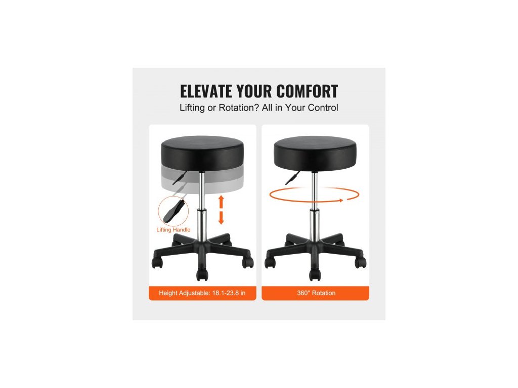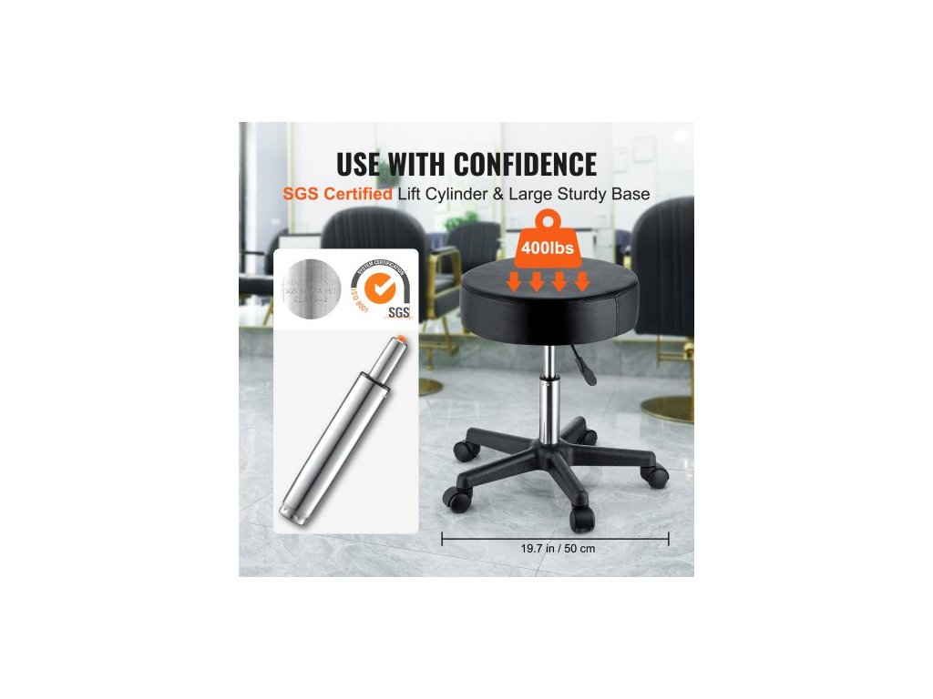 Pojízdné stoličky s kolečky, nosnost 181,4 kg, nastavitelná výška, židle s ultra silným sedákem, otočné stoličky, židle pro salon, bar, domácnost, kancelář, tetování, lékařství, masáže, černá