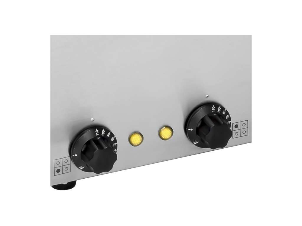 Kontrolky vedle otočných regulátorů poskytují uživateli polévkové stanice informace o statusu (zapnuto/vypnuto)příslušné nádrže. Bain Marie pracuje s výkonem 4 x 150 W a napětím 230 V. Obsluha je velmi snadná: jednoduše zapojit 1,4 m dlouhý kabels EU zástrčkou do zásuvky a udržení teploty Vašich čerstvě připravených pokrmů taknic nestojí v cestě.