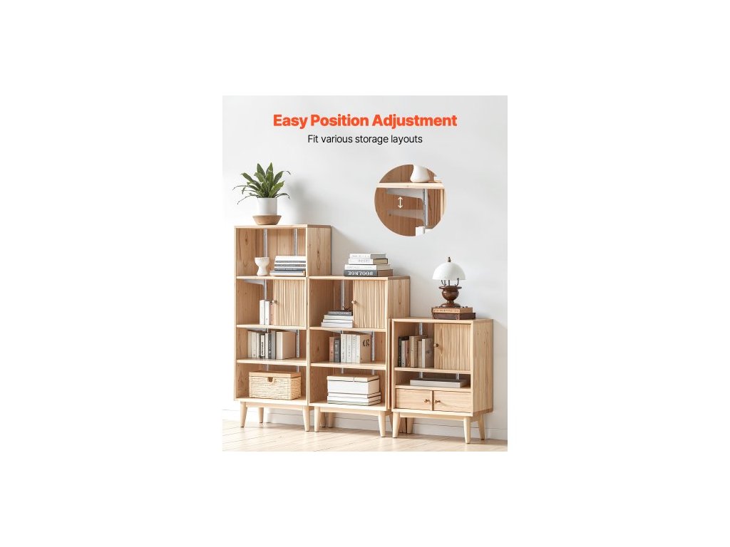 Policový pilastr , balení po 10 kusech, svislý nástěnný policový systém, odolný podpůrný systém, policové lišty s jednou drážkou, 40 šroubů součástí balení, vhodné pro organizaci úložného prostoru ve skříni, stříbrná