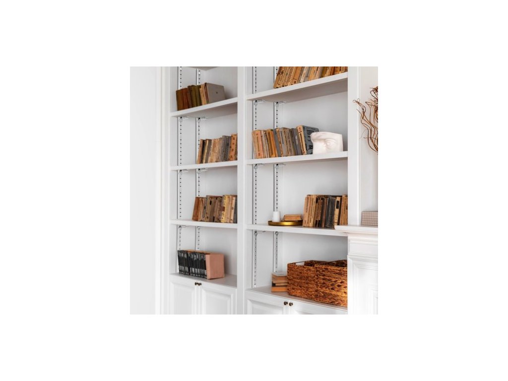 Policový pilastr , balení po 6 kusech, nastavitelné konzole na police, ocelové zárubně, pilastrové lišty s 24 šrouby, vhodné pro nástěnné policové systémy, organizaci skříněk