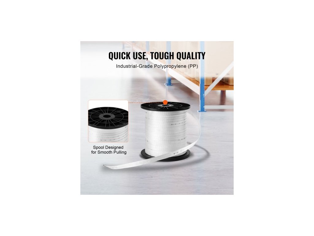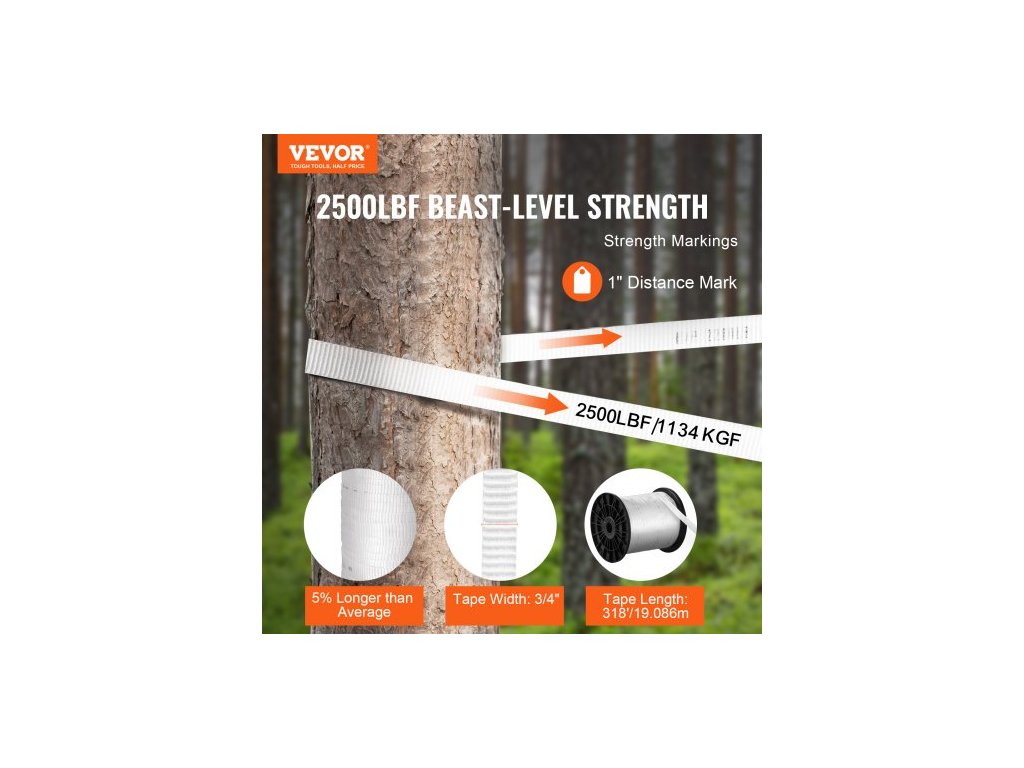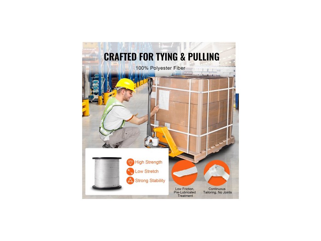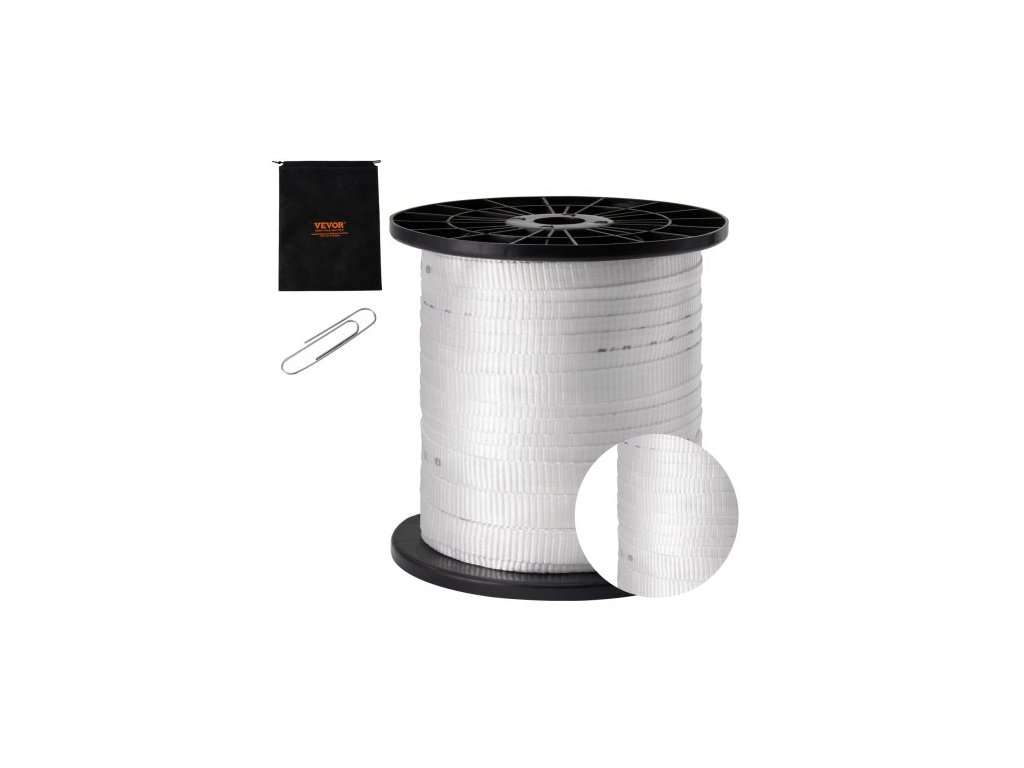 Polyesterová stahovací páska , ploché lano 3/4" x 318', tahová kapacita 2500 lbf, potištěná popruhová stahovací páska pro balení, zahradničení, komerční elektroinstalace, práce s elektroinstalacemi, bílá