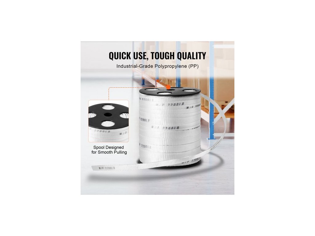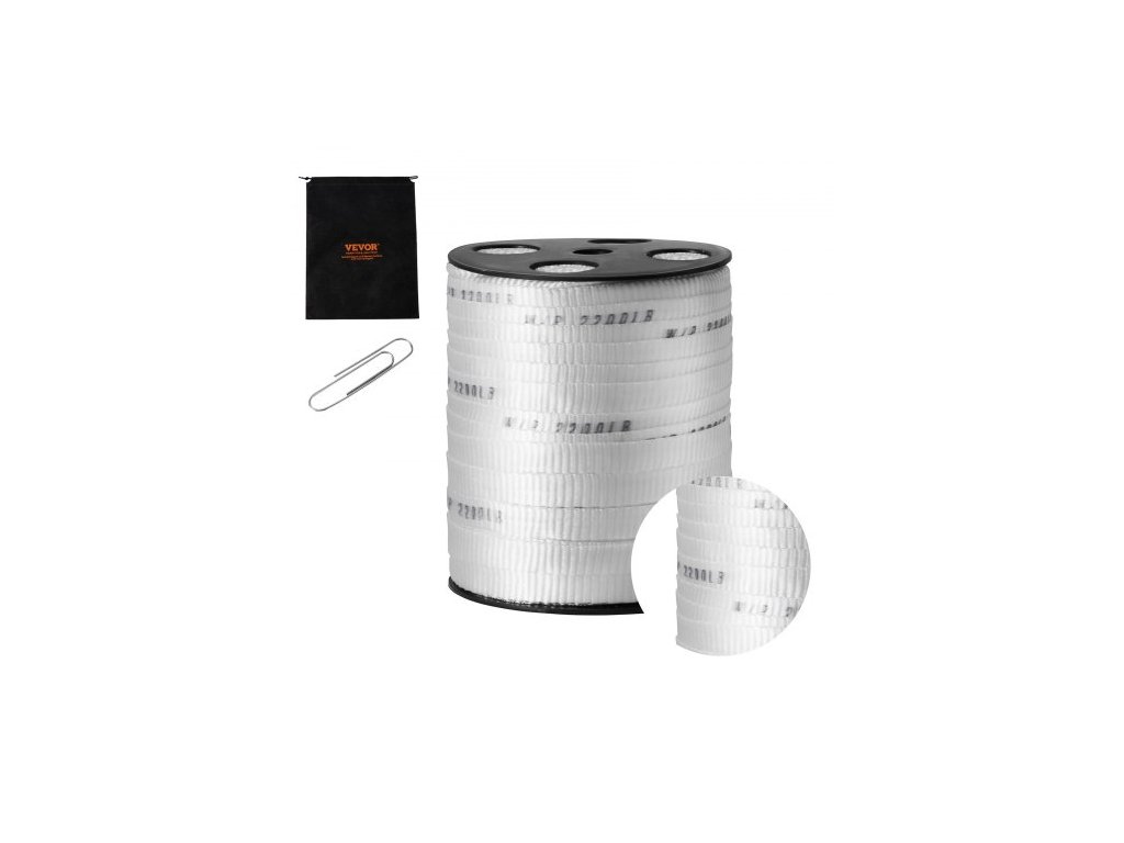 Polyesterová stahovací páska , ploché lano 5/8" x 318', tažná kapacita 2200 lbf, potištěná popruhová stahovací páska pro balení, zahradničení, komerční elektroinstalace, práce s elektroinstalacemi, bílá