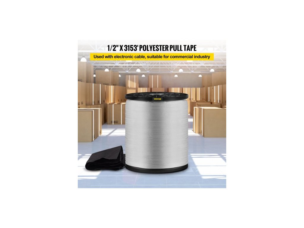 Polyesterová tažná páska 1250 liber, plochá páska 3153' x 1/2" pro práci s dráty a kabelovými trubkami, variabilní funkce, ploché lano pro tahání/nakládání/balení za každého počasí, PODMÍNKY