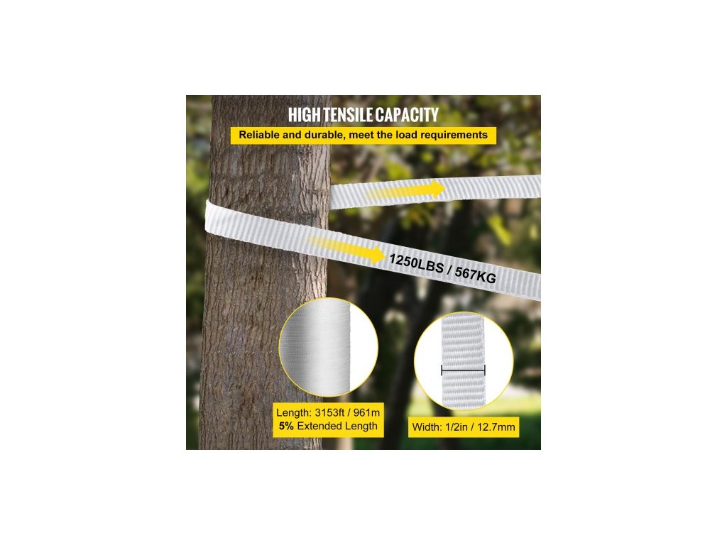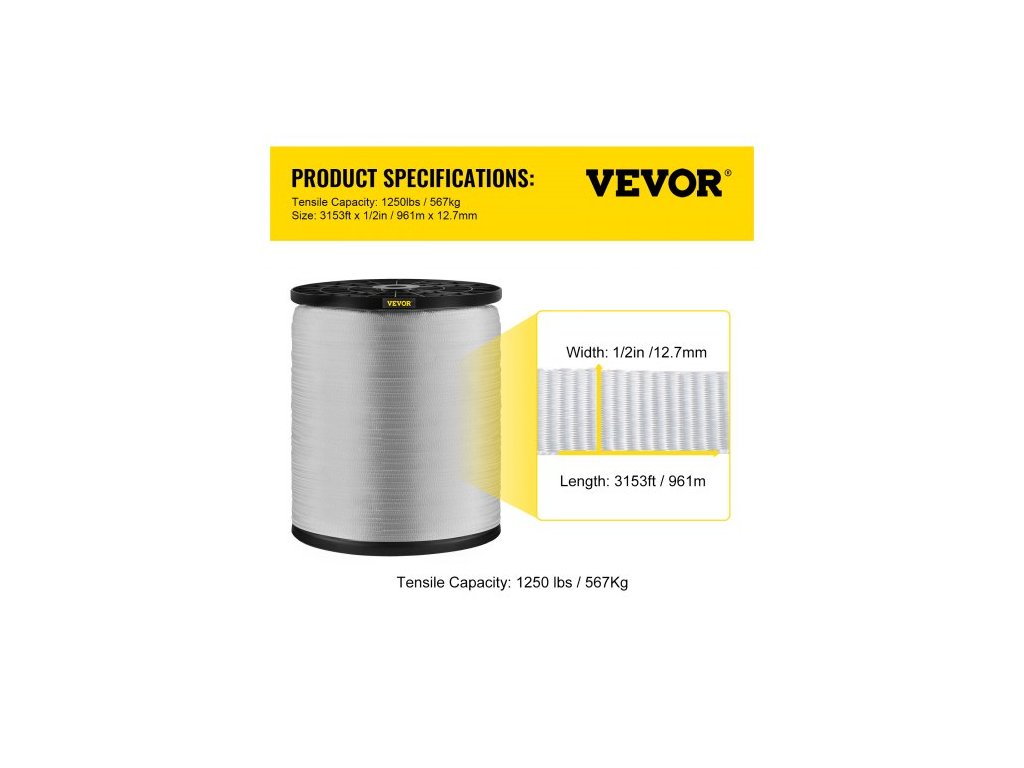 Pevnost v tahu: 1250 liber / 567 kg,Délka: 3135' / 961 m,Model: DLLD-12.7MMX961,Šířka: 1/2" / 12,7 mm,Čistá hmotnost: 31,97 liber / 14,50 kg