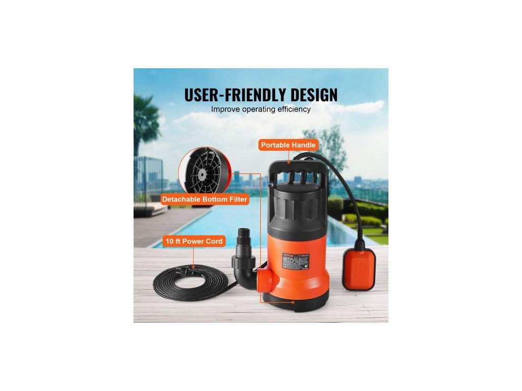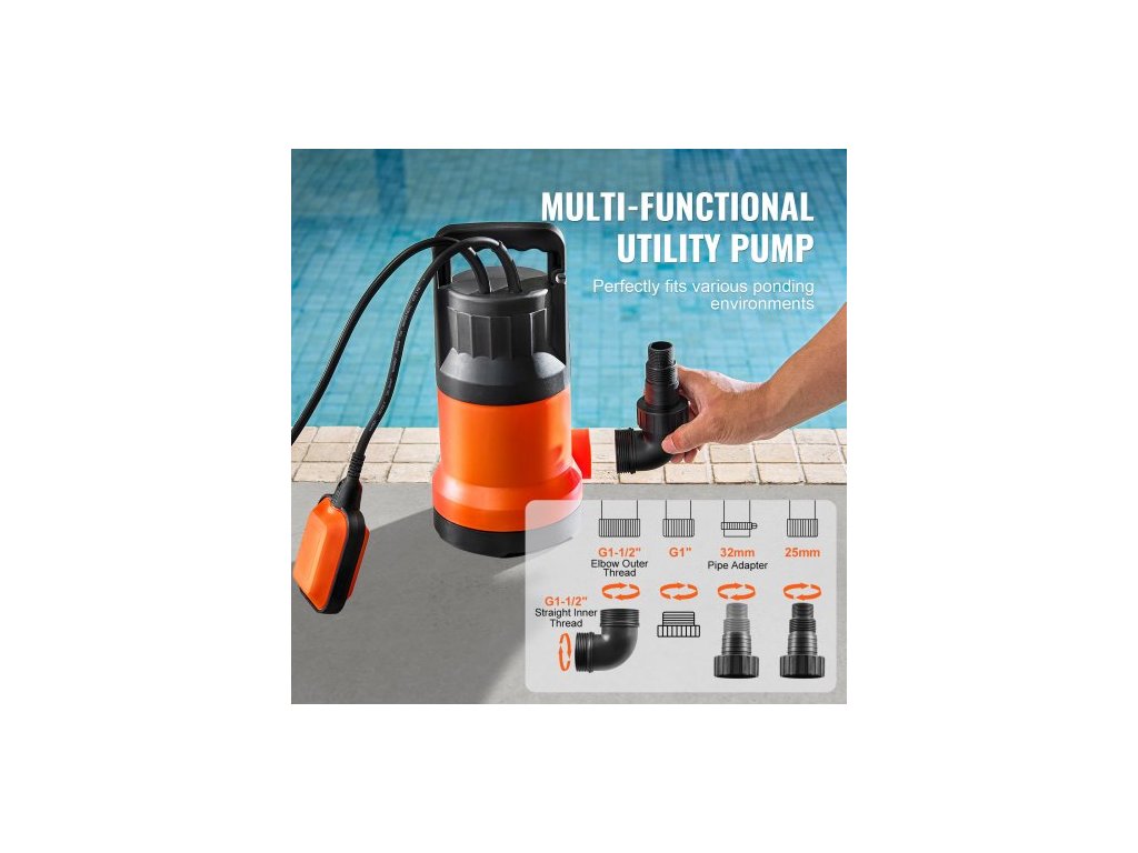 Ponorné čerpadlo pro kalovou vodu 400 W, 2510 GPH/9506 l/h, s výtlakem 26 ft/7,9 m, vodní čerpadlo