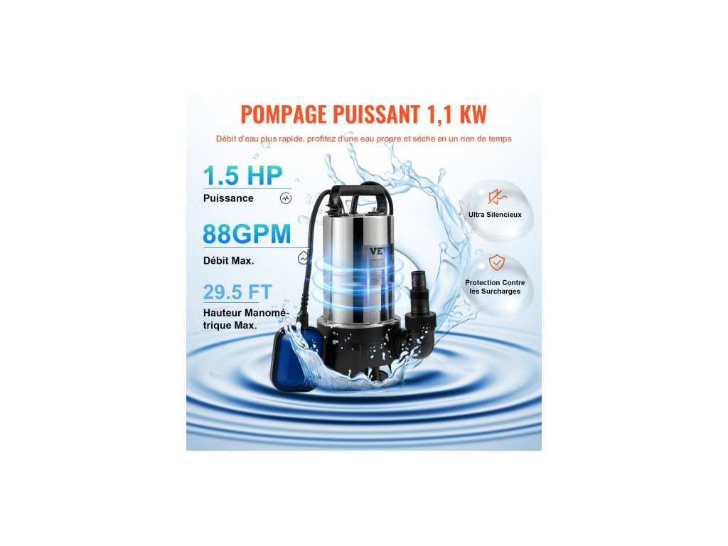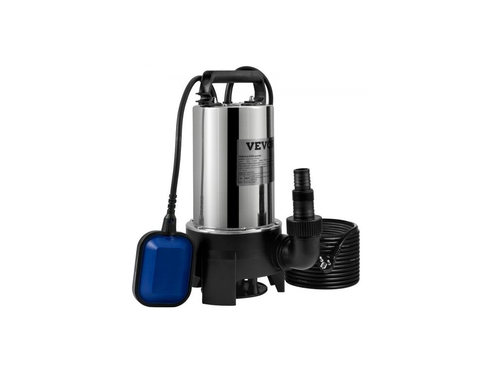 Ponorné vodní čerpadlo , 1100 W 20 000 l/h, s 10m kabelem a automatickým plovákovým spínačem, přenosné z nerezové oceli pro znečištěnou i čistou vodu, vypouštění povodní, vyprazdňování zahradních jezírek, bazénů a vířivek