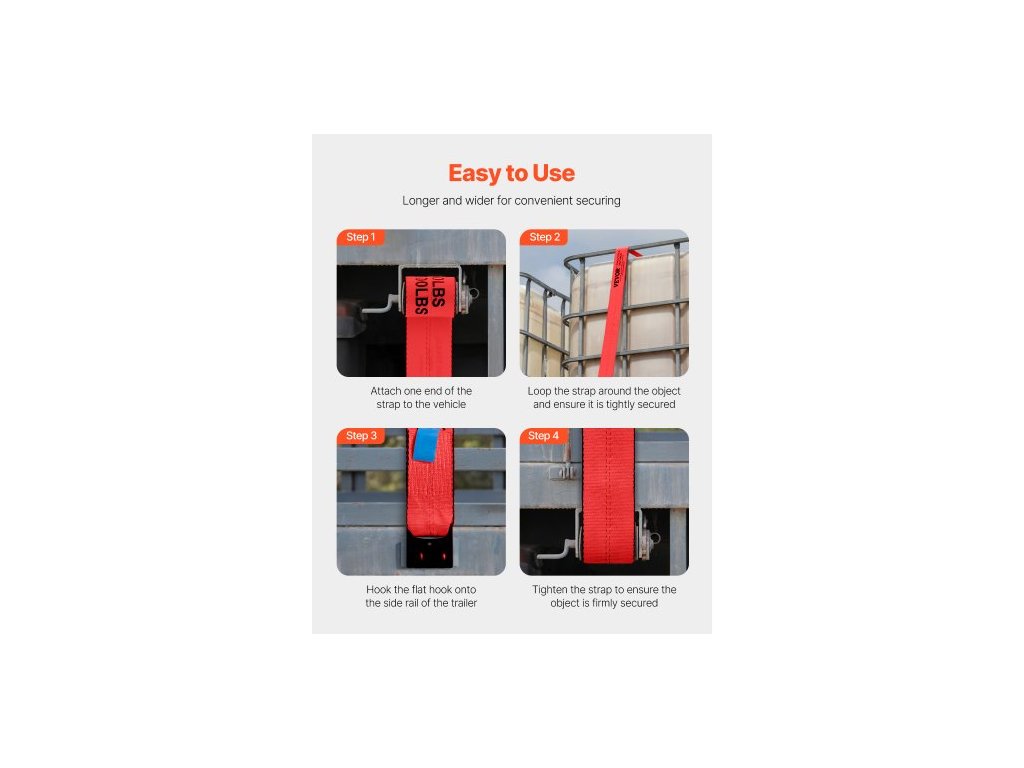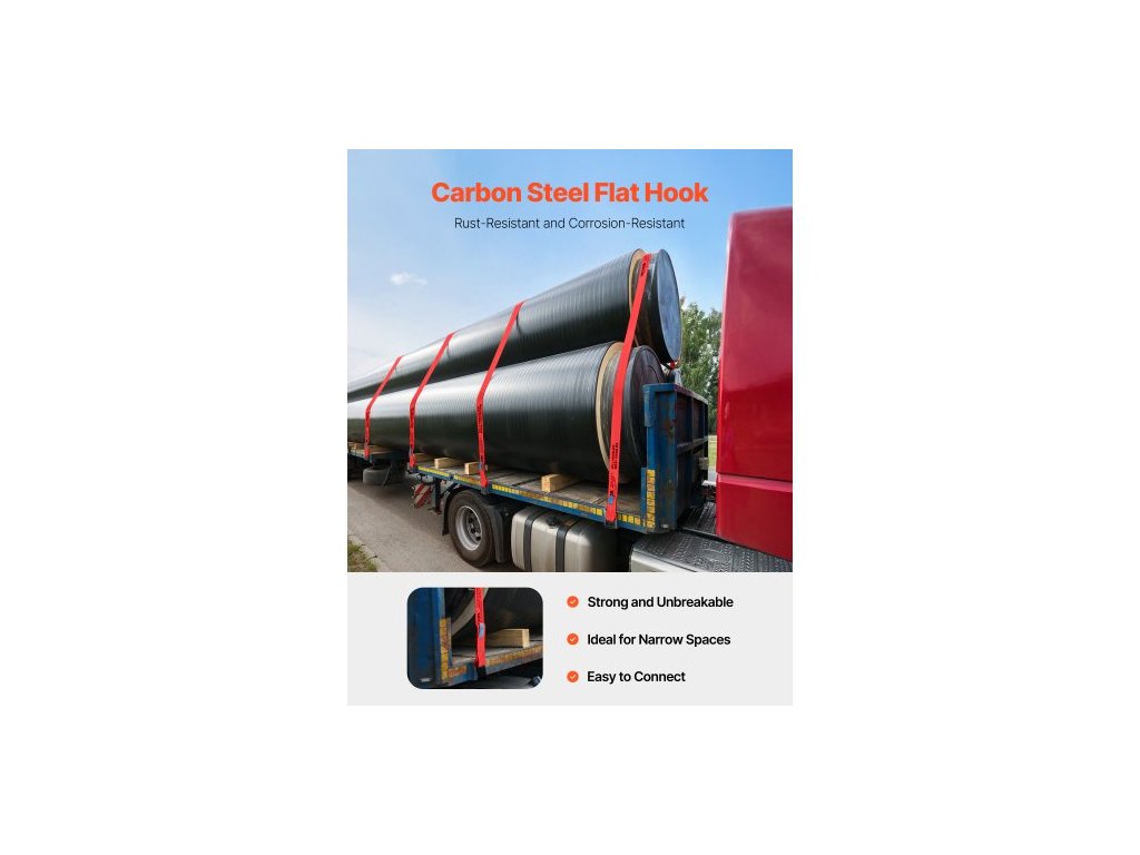 Materiál plochého háku: Uhlíková konstrukční ocel, Šířka popruhu navijáku: 4"/10,2 cm, Pevnost v tahu: 18000 lbs/8,2 T, Velikost plochého háku: 3,8" x 3,7"/96 x 94 mm, Barva: Červená, Číslo modelu položky: PG-08240001, Hmotnost výrobku: 47,6 lbs/21,6 kg, Délka popruhu navijáku: 30'/9,1 m, Množství: 10 balení, Materiál popruhu navijáku: Polyester, Nosnost: 6000 lbs/2,7 T