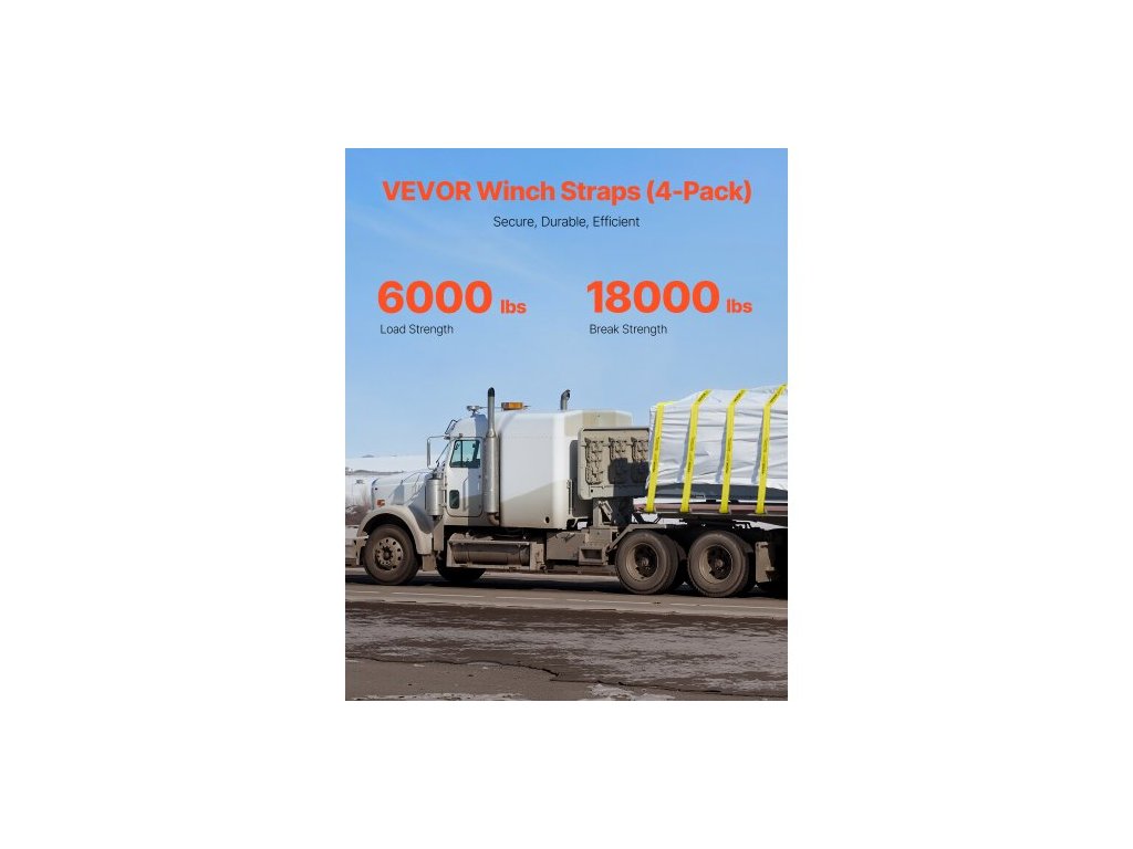 Materiál plochého háku: Uhlíková konstrukční ocel, Šířka popruhu navijáku: 4"/10,2 cm, Pevnost v tahu: 18000 lbs/8,2 T, Velikost plochého háku: 3,8" x 3,7"/96 x 94 mm, Barva: Žlutá, Číslo modelu položky: PG-08240004, Hmotnost výrobku: 19,51 lbs/8,85 kg, Naviják Délka popruhu: 30'/9,1 m, Množství: 4 balení, Materiál popruhu navijáku: Polyester, Nosnost: 6000 lbs/2,7 T