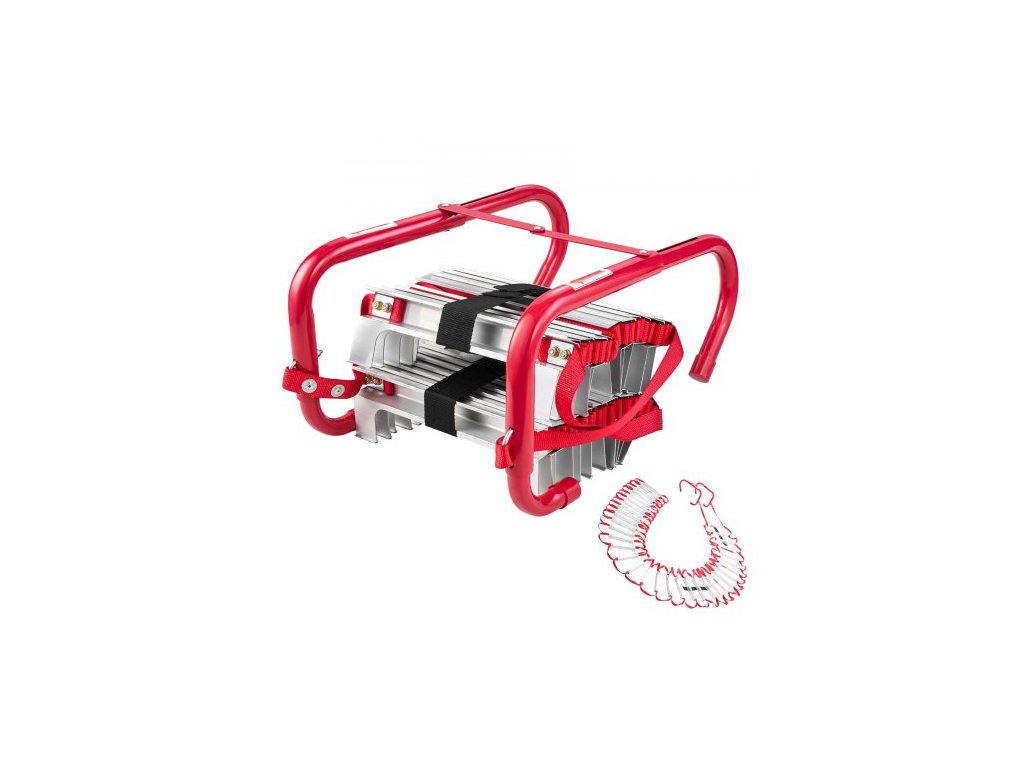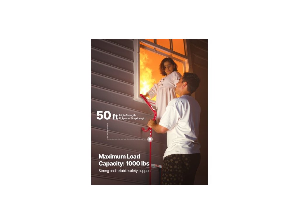 Požární žebřík , 5-6patrový, 15,24 m zatahovací, lehký bezpečnostní únikový žebřík z hliníkové slitiny s pevným polyesterovým popruhem, protiskluzový a široký, maximální zatížení 453 kg