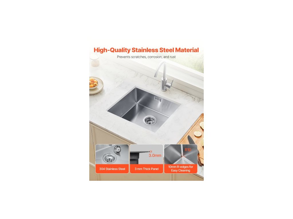 Pracovní stanice s kuchyňským dřezem 50 cm, nerezové dřezy pod dřez 304, vestavné jednodřezové umyvadlo ve stylu farmářského domu s příslušenstvím, myčky nádobí do obytných vozů, přípravných kuchyní, prádelen, barů