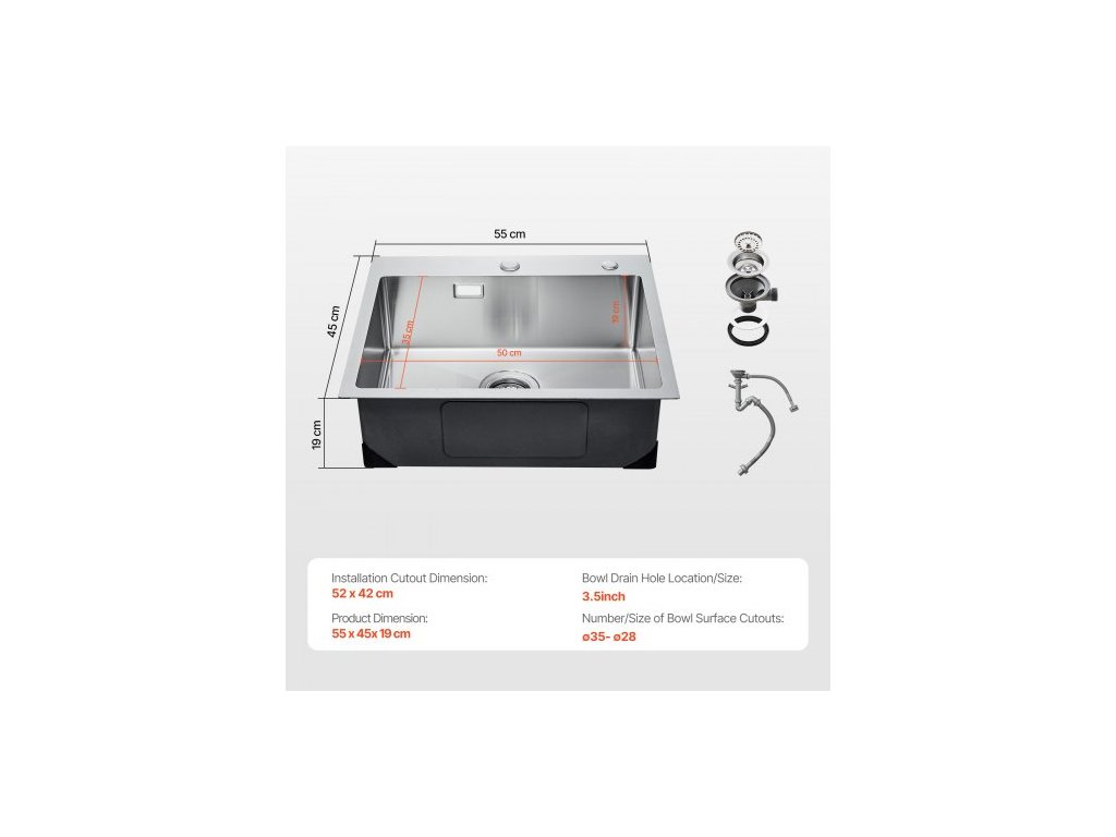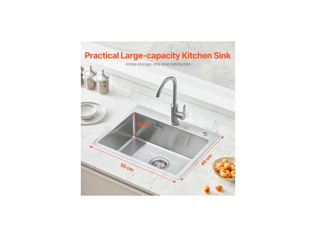Pracovní stanice s kuchyňským dřezem 55 cm, dřezy z nerezové oceli 304 s horní montáží, vestavné jednodřezové umyvadlo ve venkovském stylu s příslušenstvím, dřezy do myčky nádobí pro karavan, přípravnou kuchyň, prádelnu, bar
