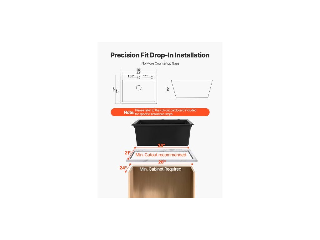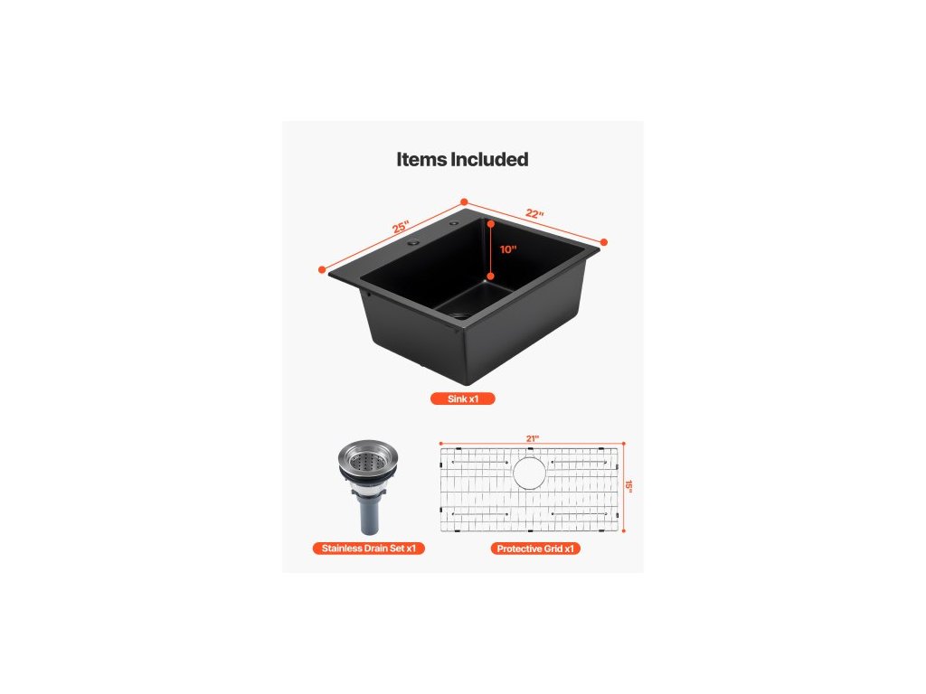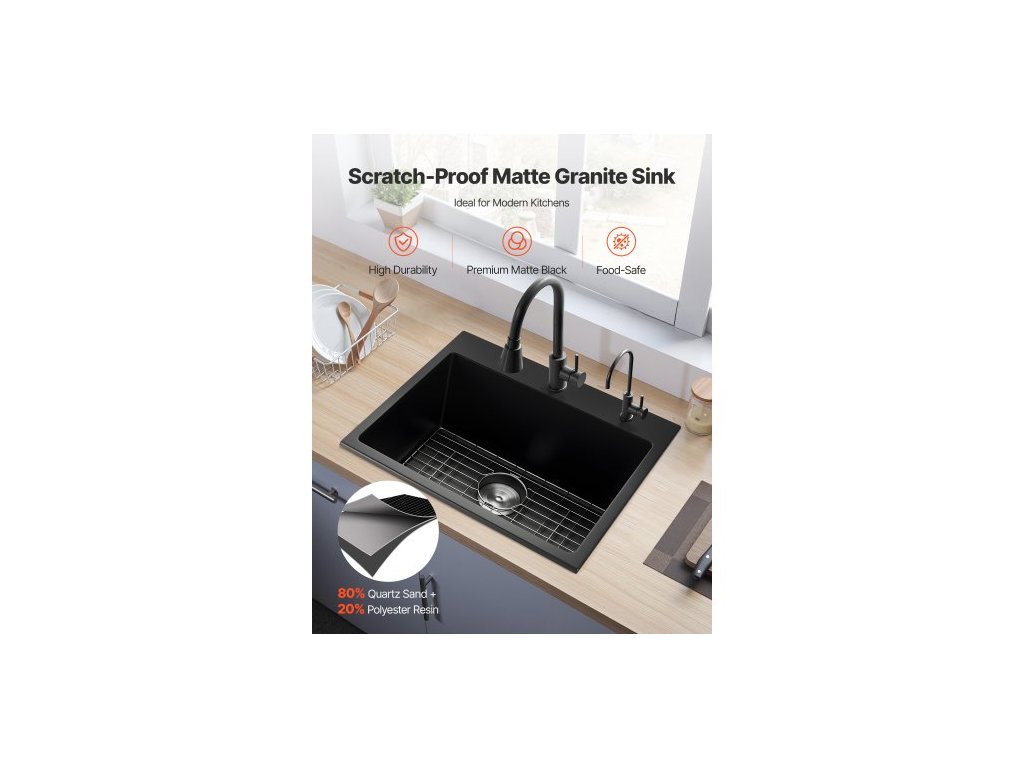 Typ: Montáž na horní část,Rozměry mřížky: 21x15 palců / 52,5x37,5 cm xR15,Barva: Černá,Číslo modelu položky: CS6356,Čistá hmotnost výrobku: 33,95 lb / 15,4 kg,Vnitřní rozměry dřezu: 23x17x10 palců / 575x424x254 mm,Vnější rozměry dřezu: 25x22x10 palců / 635x559x254 mm,Min. Velikost skříňky: 28x24 palců / 700x600 mm, Hlavní materiál: Křemenný písek a pryskyřice, Minimální doporučená velikost výřezu: 24x21 palců / 610x530 mm