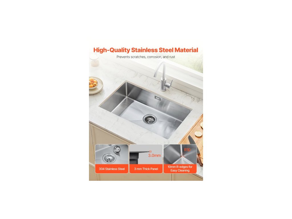 Pracovní stanice s kuchyňským dřezem 76 cm, nerezové dřezy pod dřez 304, vestavné jednodřezové umyvadlo ve stylu farmářského domu s příslušenstvím, myčky nádobí do obytných vozů, přípravných kuchyní, prádelen, barů