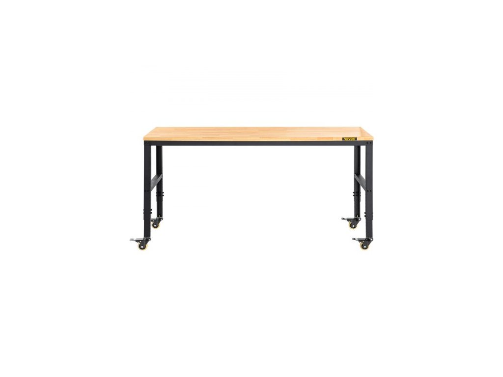 Pracovní stůl s nastavitelnou výškou, 155 x 51 cm, garážový stůl s výškou 80–105 cm a nosností 720 kg, se zásuvkami, dřevěnou deskou, kovovým rámem a otočnými kolečky, pro kancelář, domácí dílnu