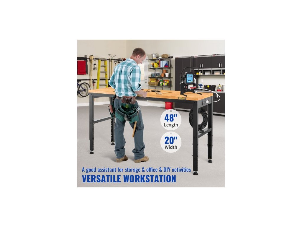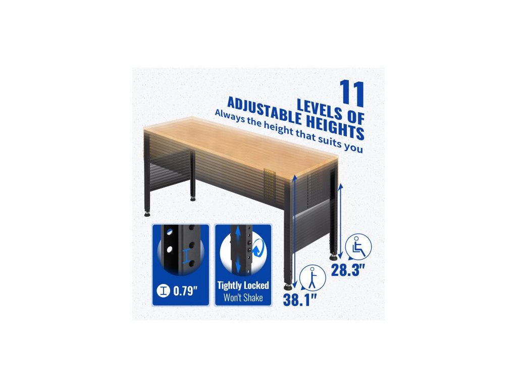 Rozměry desky stolu: 1220 x 508 mm,Počet otvorů pro nastavení: 12,Barva: Hnědá,Rozměry výrobku: 1220 x 508 x 968 mm,Materiál desky stolu: Dubové prkno,Tloušťka desky stolu: 25 mm,Tloušťka stěny trubky: 1,5 mm,Nosnost: 900 kg,Rozsah výšky: 719–968 mm,Číslo modelu položky: M4820,Hmotnost výrobku: 23 kg,Materiál rámu: Ocel válcovaná za studena,Kabel Délka: 3 m