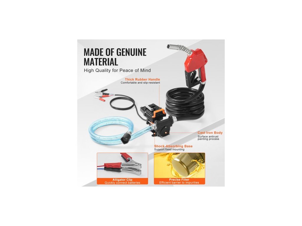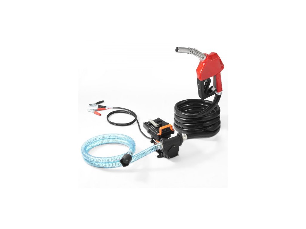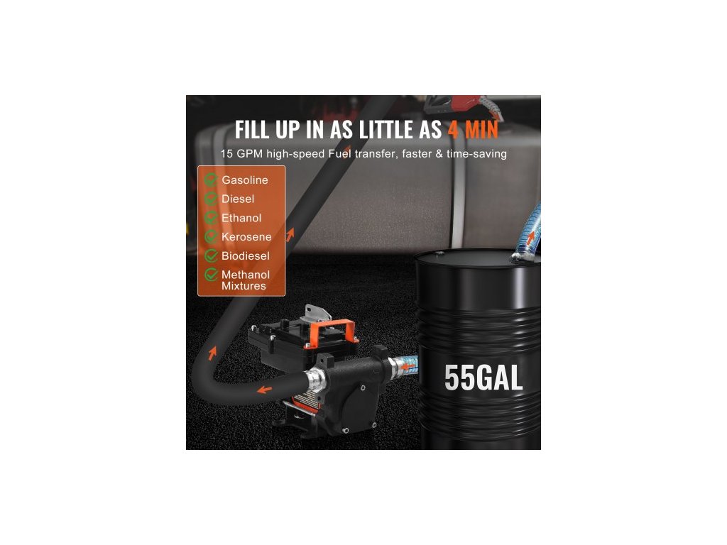 Přečerpávací palivové čerpadlo , 12V DC 57L/min (15 GPM) 186W (1/4 HP), přenosné elektrické přečerpávací čerpadlo na naftu s automatickým vypínáním palivové trysky, dlouhá vstupní a výstupní hadice pro benzín, naftu, petrolej a směsi methanolu