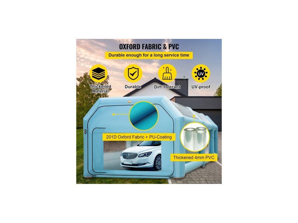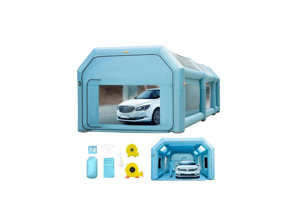 Přenosná nafukovací lakovací kabina , nafukovací stříkací kabina 792,48 x 457,2 x 304,8 cm, stan na lakování automobilů se systémem vzduchového filtru a 2 ventilátory, vylepšený stan na nafukovací stříkací kabina, pracoviště pro lakování automobilů, parkovací garáž