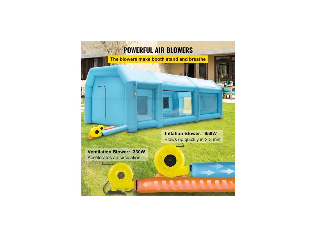 Přenosná nafukovací lakovací kabina , 792,48 x 457,2 x 304,8 cm, nafukovací stříkací kabina, stan na lakování automobilů se systémem vzduchového filtru a 2 ventilátory, vylepšený stan s nafukovací stříkací kabinou, pracoviště pro lakování249