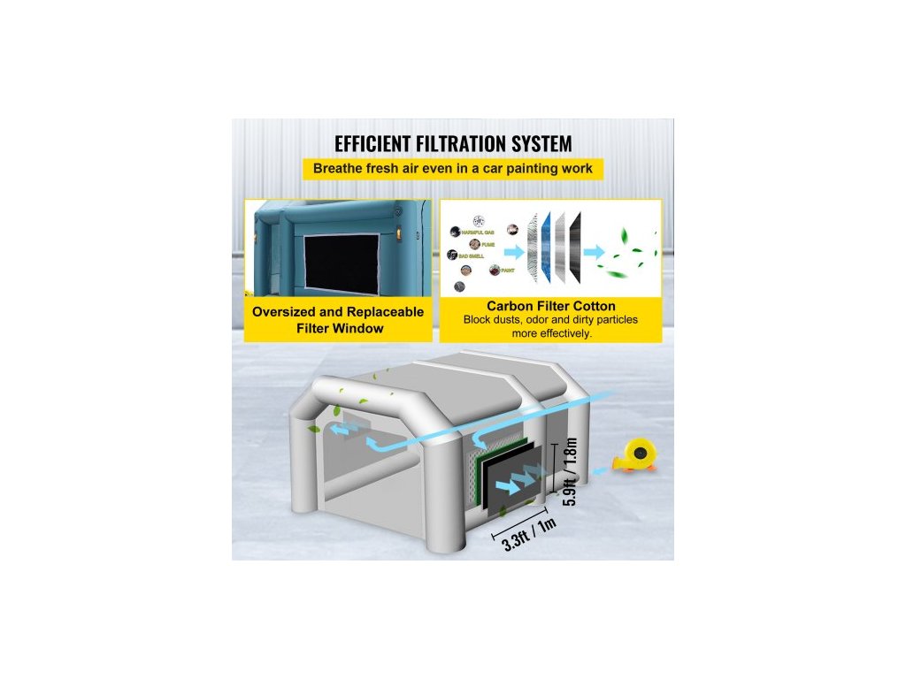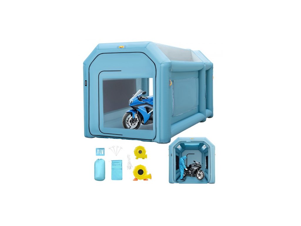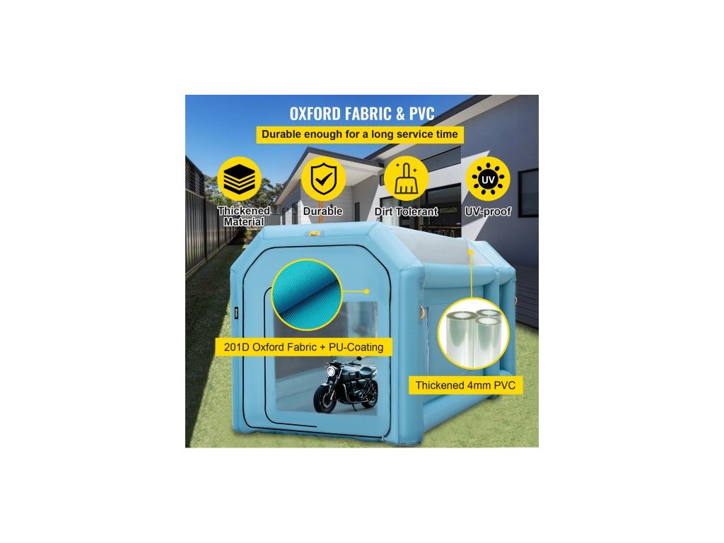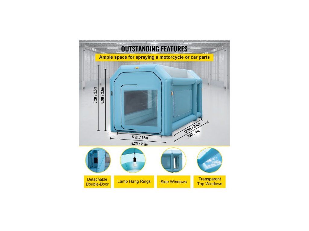Přenosná nafukovací lakovací kabina , nafukovací stříkací kabina 396,24 x 243,8 x 243,8 cm, stan na lakování automobilů se systémem vzduchového filtru a 2 ventilátory, vylepšený stan na nafukovací stříkací kabina, pracoviště pro lakování automobilů a motocyklů