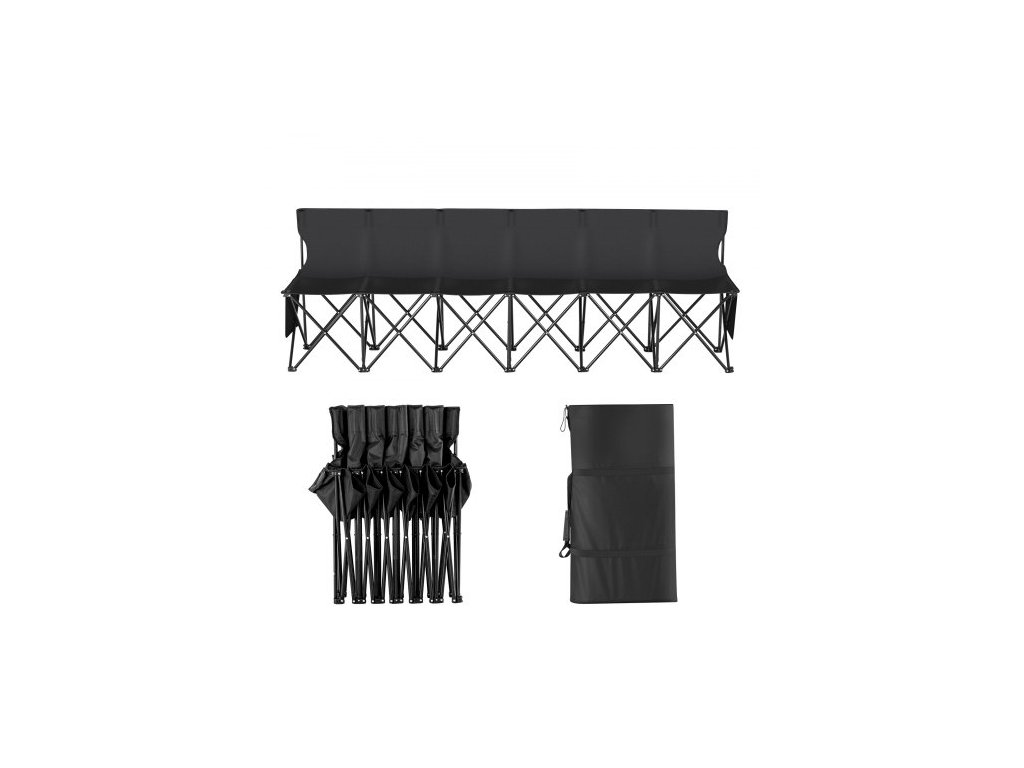 Přenosná skládací lavička , 6místná skládací fotbalová lavička s bočními kapsami a přepravní taškou, lehké boční sezení s opěradlem pro fotbal, baseball, kempování, venkovní akce, černá