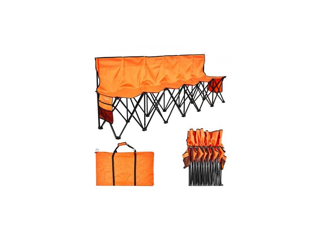 Přenosná skládací lavička , 6místná skládací fotbalová lavička s bočními kapsami a přepravní taškou, lehké boční sezení s opěradlem pro fotbal, baseball, kempování, venkovní akce, oranžová