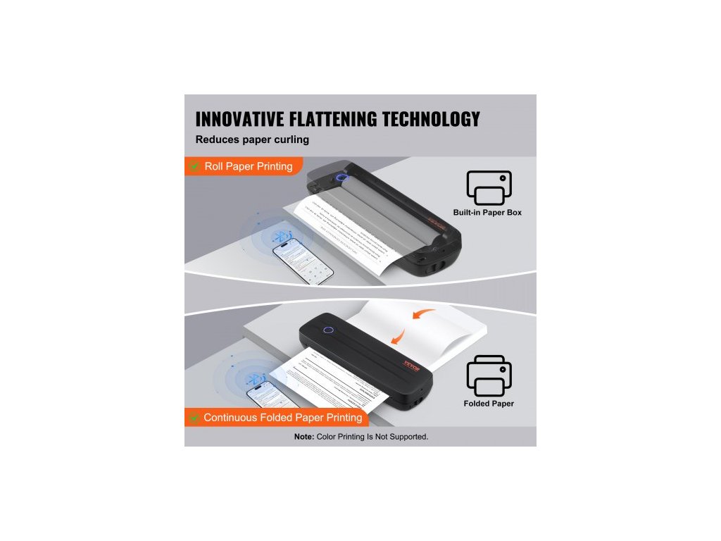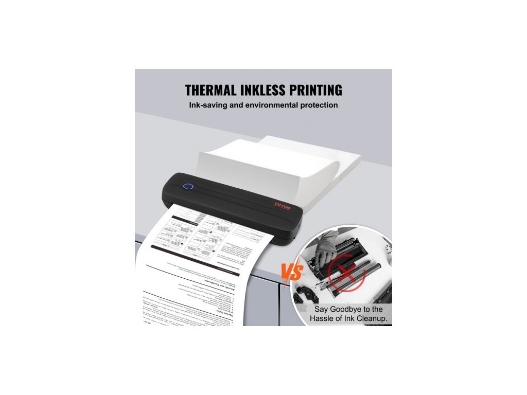 Přenosná termální tiskárna - baterie 2600 mAh, 300 DPI, mobilní tiskárna bez inkoustu s Bluetooth pro A4, A5 a 8,5" x 11" termální papír, kompatibilní s iOS, Android a notebooky, pro cestování, kancelář a domácí použití