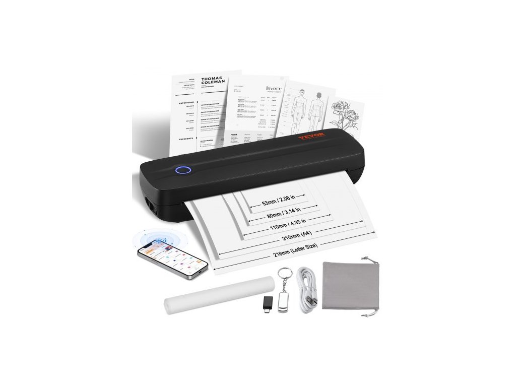 Přenosná tiskárna – baterie 2600 mAh, 203 DPI, mobilní tiskárna bez inkoustu s Bluetooth pro A4, A5 a termopapír 8,5" x 11", kompatibilní s iOS, Android a notebooky, ideální pro cestování, kancelář i domácí použití