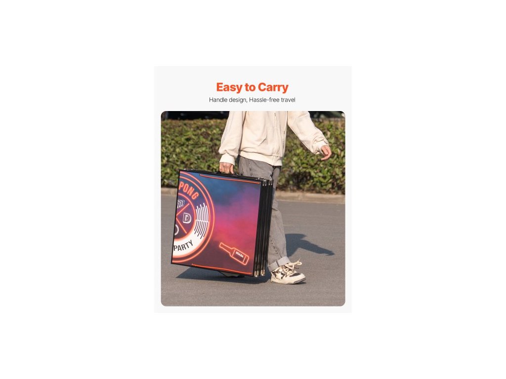 Přenosný pivní pongový stůl o délce 2,4 metru, LED světla, skládací stůl s úchyty na přenášení a 6 pongovými míčky, nastavitelná výška, lehký stůl do kanceláře, na párty, na cestování a kempování.