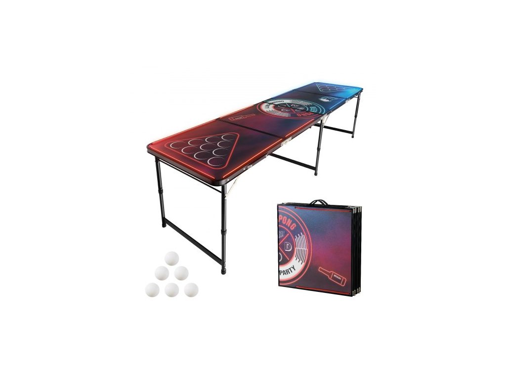 Přenosný pivní pongový stůl o délce 8 stop, LED osvětlení, skládací stůl s úchyty pro přenášení a 6 pongovými míčky, nastavitelná výška, lehký stůl do kanceláře, na párty, cestování a kempování