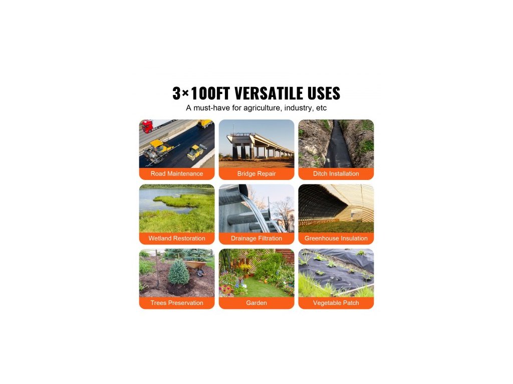příjezdová tkanina, 3x100FT netkaná geotextilie pro terénní úpravy, odolná zahradní bariéra proti plevelu, krajinářská tkanina 4OZ, drenážní tkanina pro francouzské odvodnění, půdopokryvná tkanina na hubení plevele