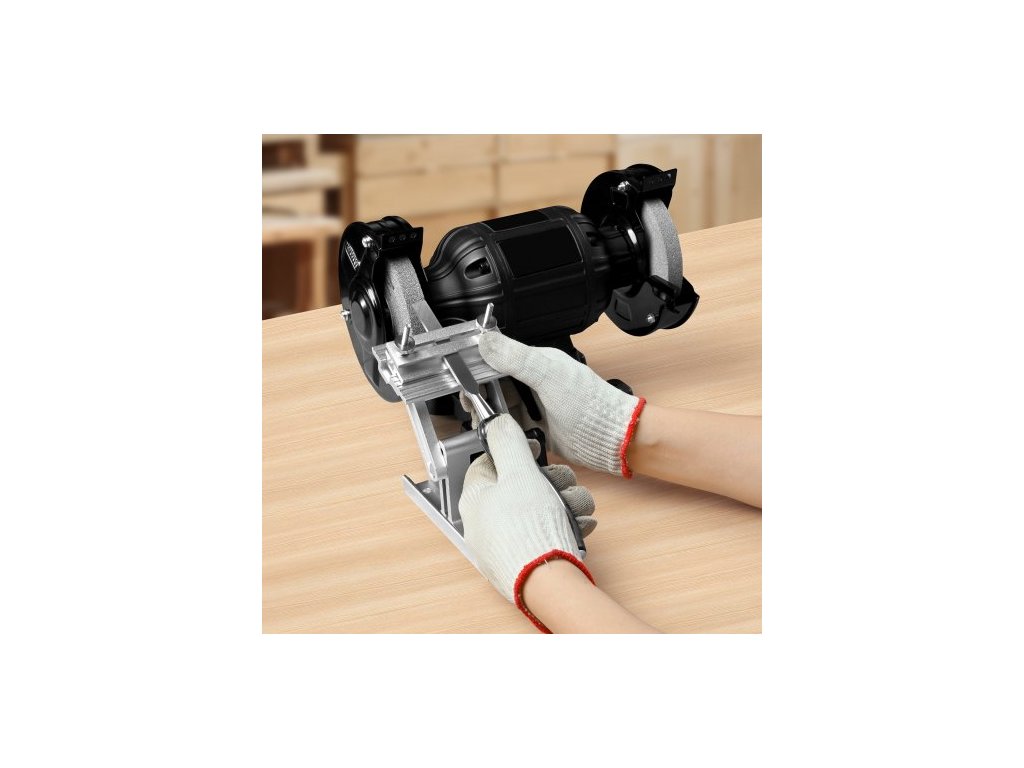 Přípravek na ostření nástrojů , nastavitelný náhradní přípravek na ostření nástrojů pro stolní brusky o průměru 6" nebo 8" (152 mm nebo 203 mm) – s plochým pokosovým suportem pro čepele a sekáče o šířce 0–2,5 palce (0–64 mm)