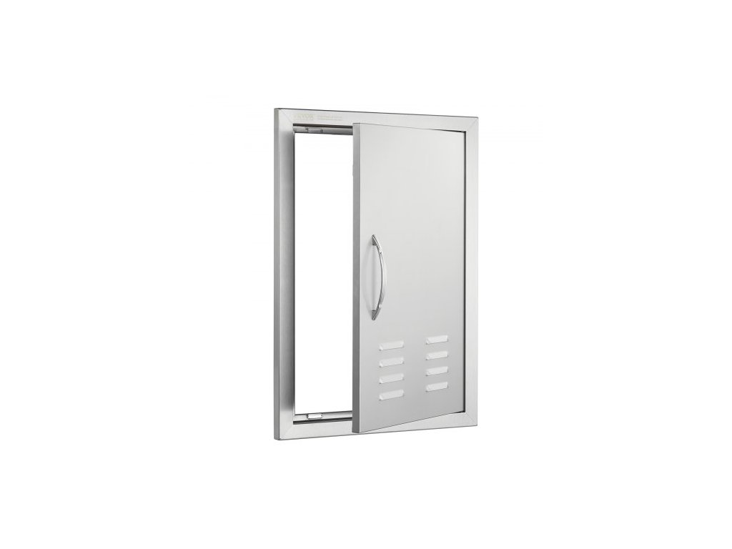 Přístupové dvířka BBQ, 610x431 mm jednoduché venkovní kuchyňské dveře, nerezové zapuštěné dveře, svislé nástěnné dveře s klikou, větracími otvory a hákem, pro grilovací ostrůvek, grilovací stanici, venkovní skříňku