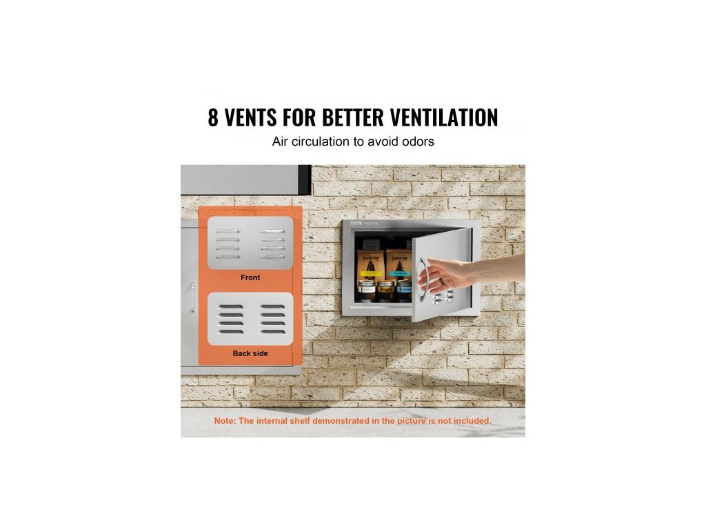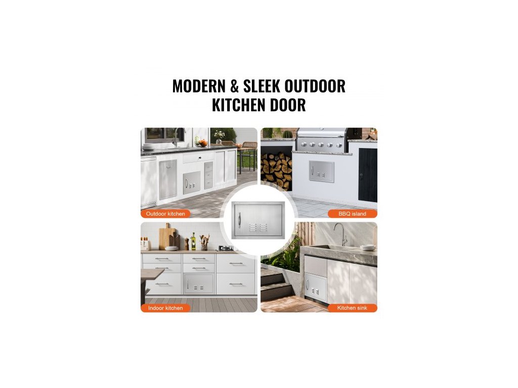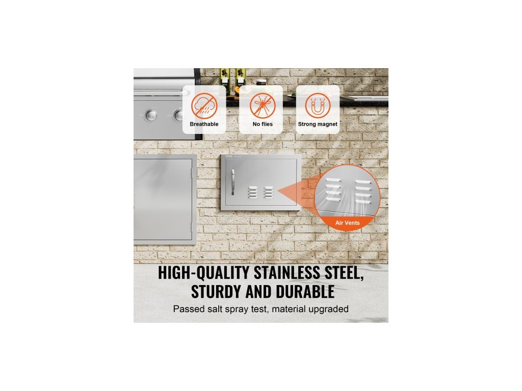 Přístupové dvířka BBQ, jednoduché venkovní kuchyňské dveře 508x356 mm, nerezové zapuštěné dveře, svislé nástěnné dveře s klikou a větracími otvory, pro grilovací ostrůvek, grilovací stanici, venkovní skříňku