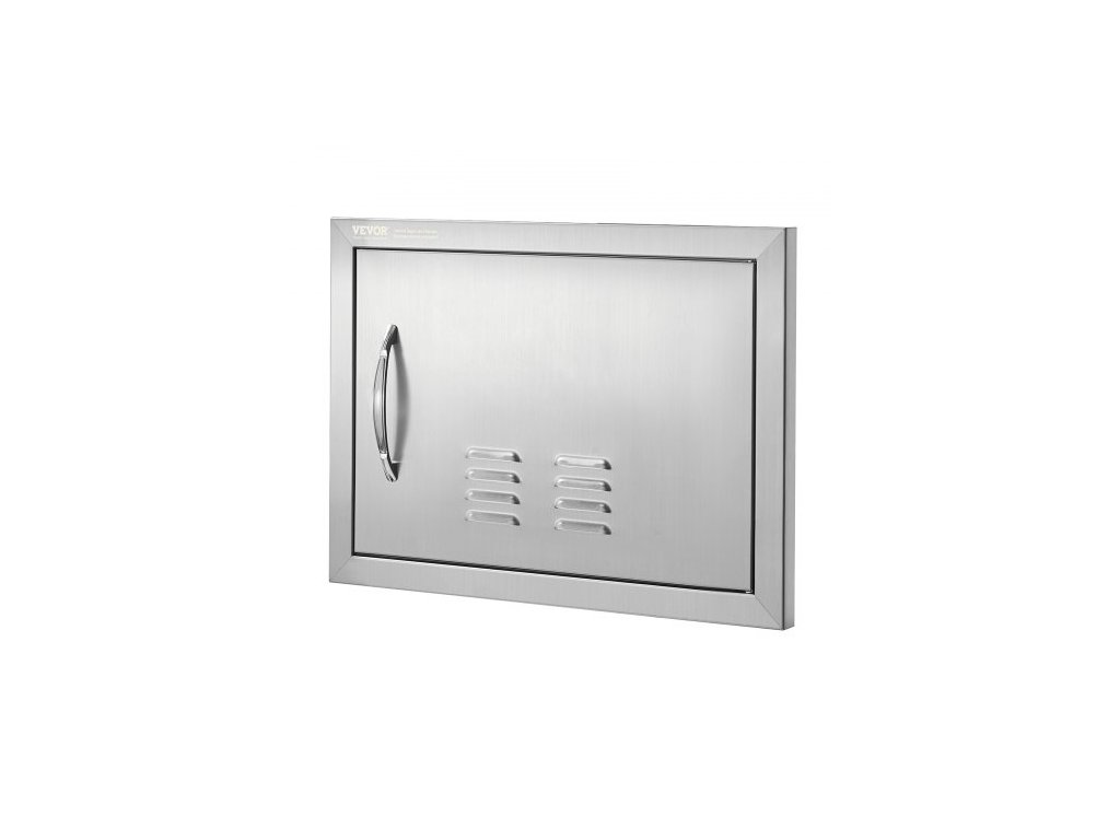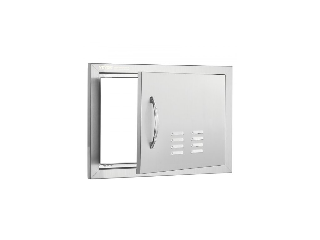 Přístupové dvířka k grilu , jednoduché venkovní kuchyňské dvířka 508x356 mm, nerezové zapuštěné dvířka, svislé nástěnné dvířka s madlem a větracími otvory, pro grilovací ostrůvek, grilovací stanici, venkovní skříňku