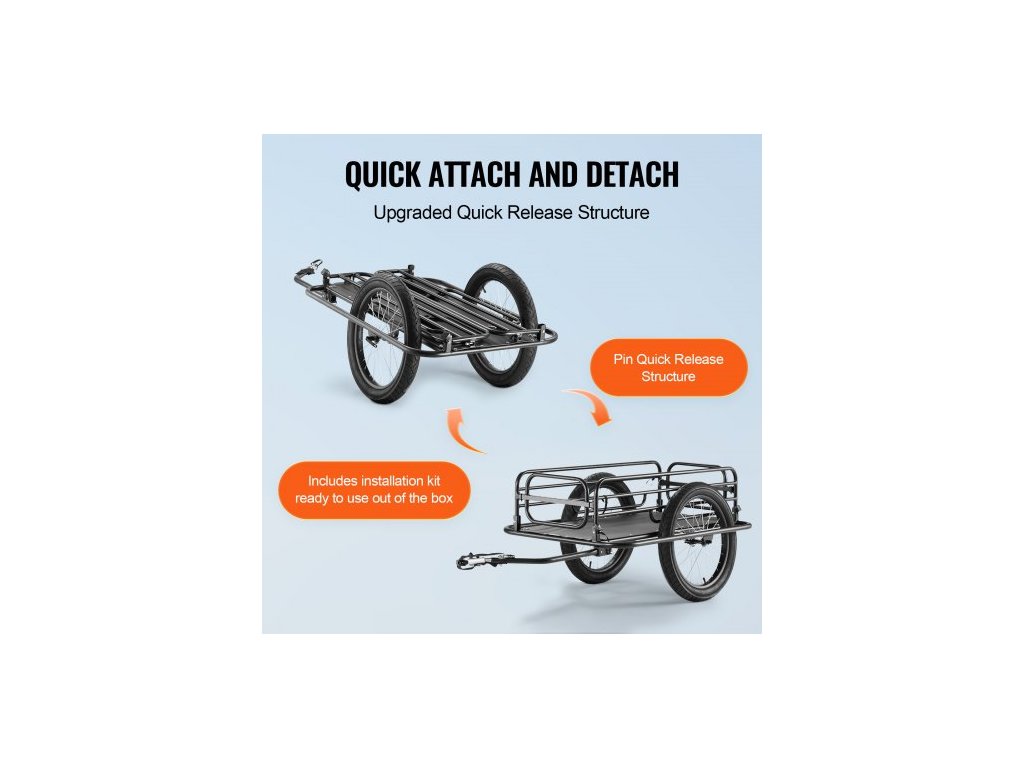 Přívěs za kolo , nosnost 124,7 kg, těžký vozík na kolo, skládací kompaktní úložný prostor a rychlé uvolnění s univerzálním závěsem, kola 50,8 cm (20"), pasuje na většinu kol jízdních kol, rám z uhlíkové oceli