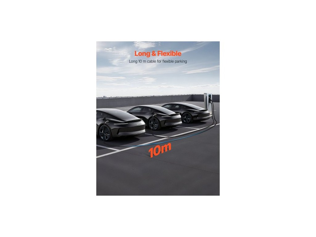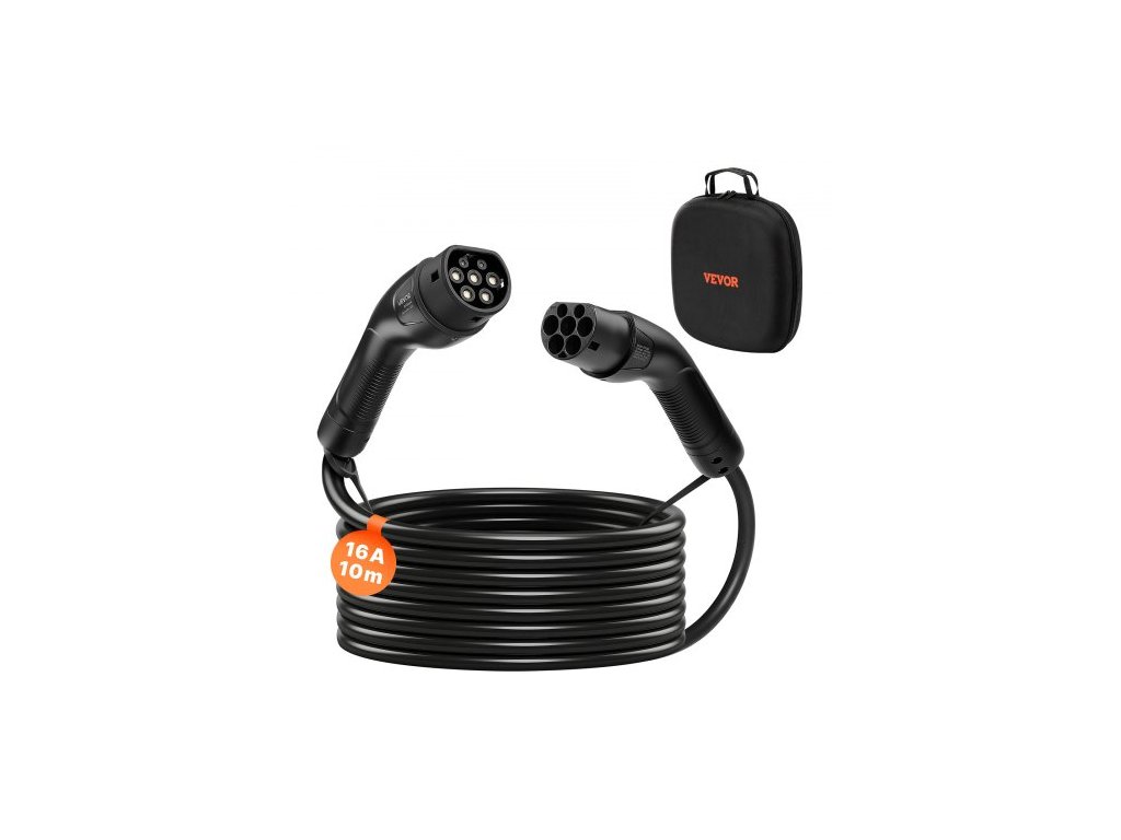 Prodlužovací kabel pro nabíječku elektromobilů , 16A 10 m, max. 11 kW, kompatibilní se všemi nabíječkami elektromobilů typu 2, 3fázový AC 480V 50Hz, IP65, odolný nabíjecí kabel do auta s přepravní taškou