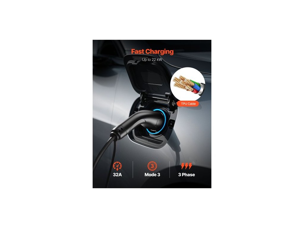 Maximální výkon: 22 kW, Provozní teplota: -22°F až 122°F (-30°C až 50°C), Specifikace kabelu: 5 x 6 mm2 vodiče + 1 x 0,5 mm2 vodič (6žilový TPU kabel), Hlavní materiály: ABS + PA66, Stupeň krytí: IP65, Maximální proud: 32A, Číslo modelu položky: EVE04, Typ konektoru: Zástrčka IEC 62196 (samec) + zásuvka IEC 62196 (samice), vstupní napětí: 3fázové střídavé napětí 480 V, 50 Hz, hmotnost netto: 5,6 kg