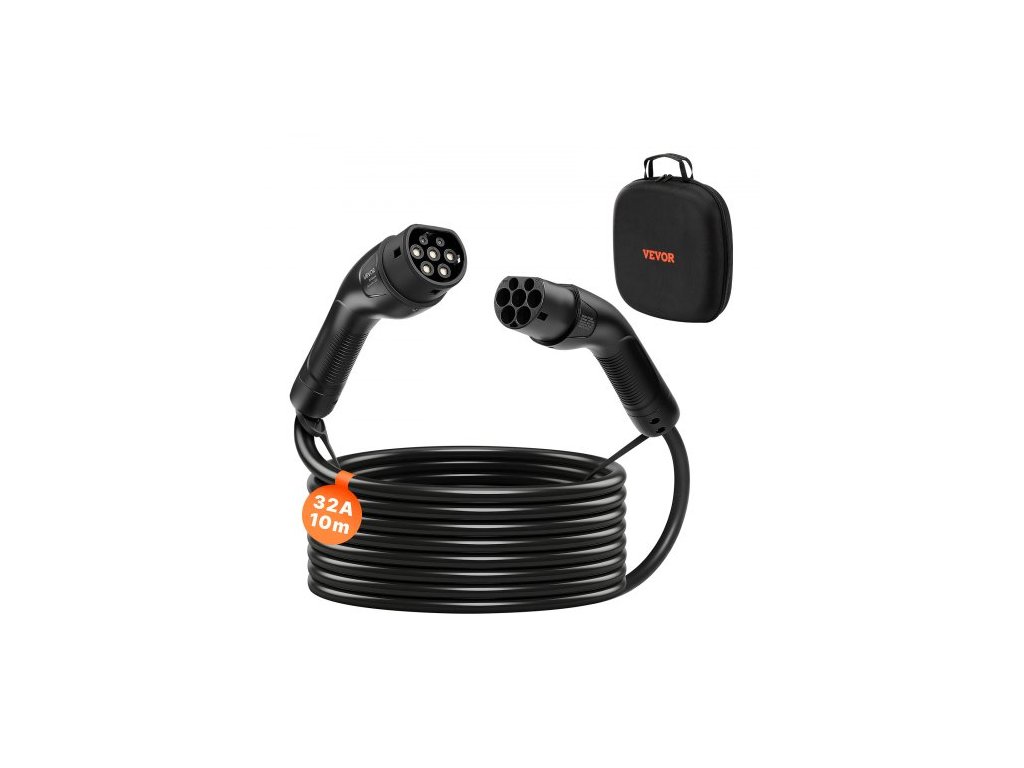 Prodlužovací kabel pro nabíječku elektromobilů , 32A 10 m, max. 22 kW, kompatibilní se všemi nabíječkami elektromobilů typu 2, 3fázový AC 480V 50Hz, IP65, odolný nabíjecí kabel do auta s přepravní taškou