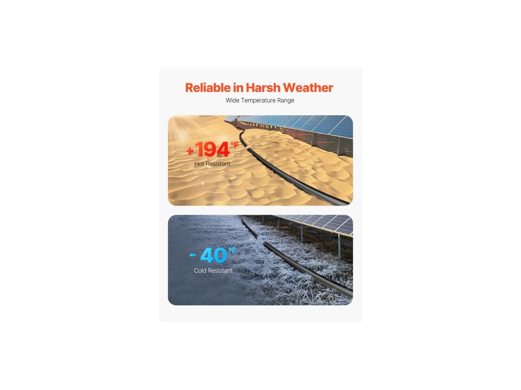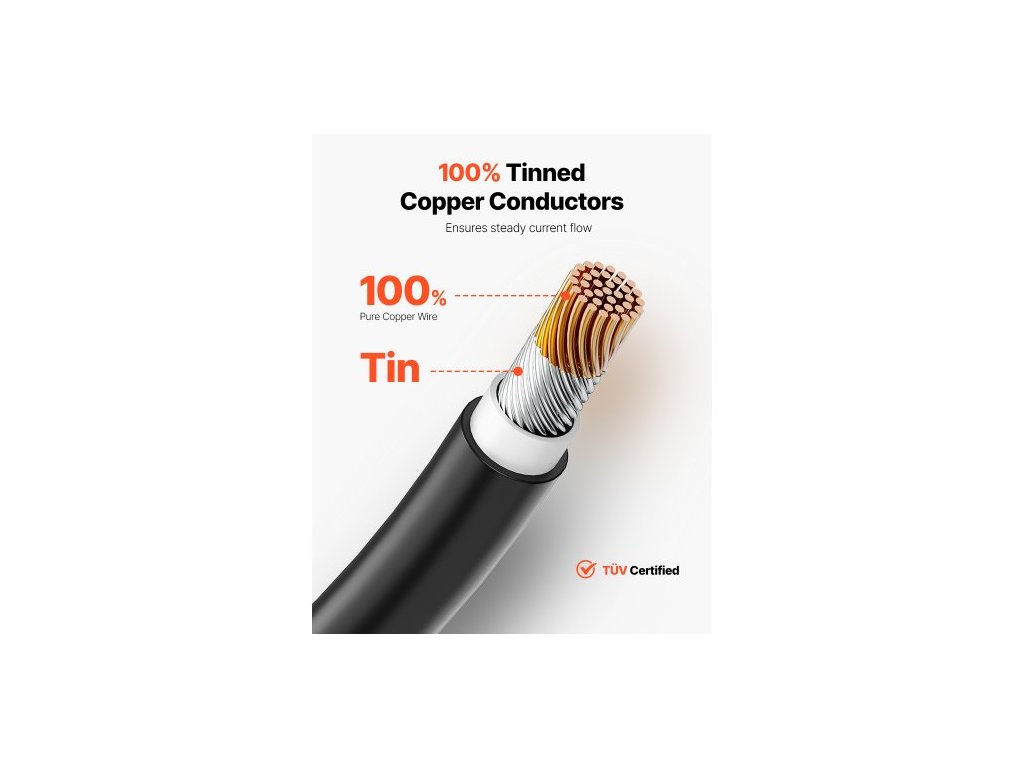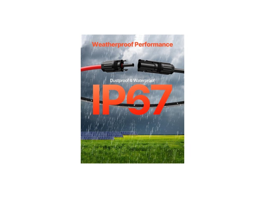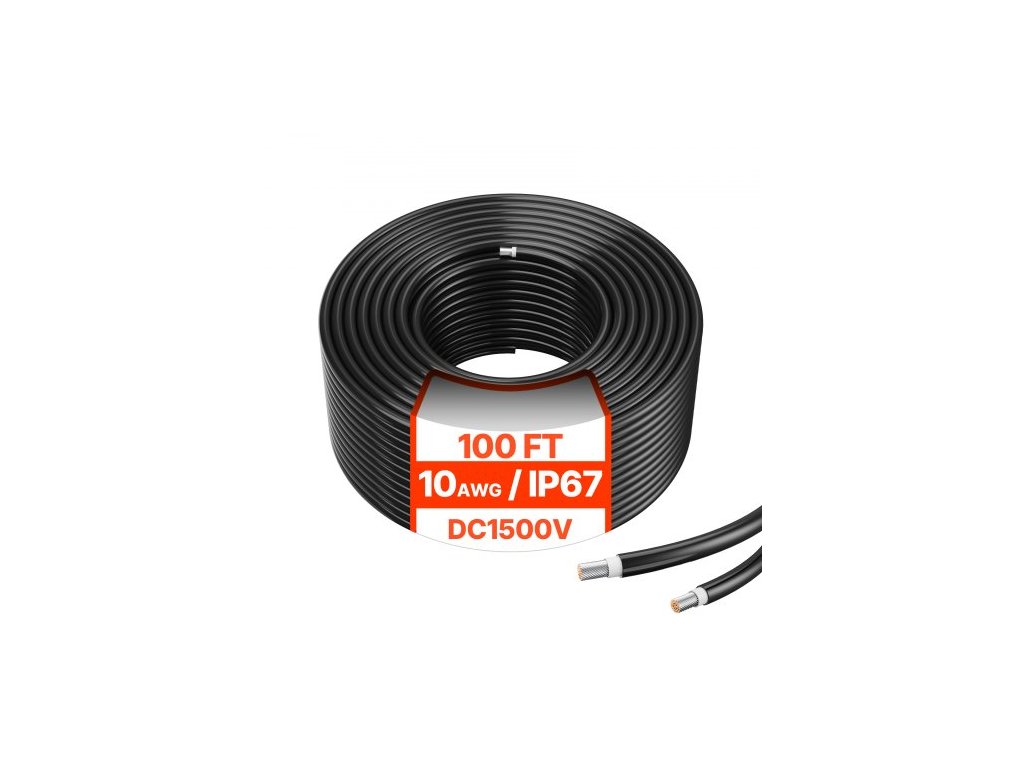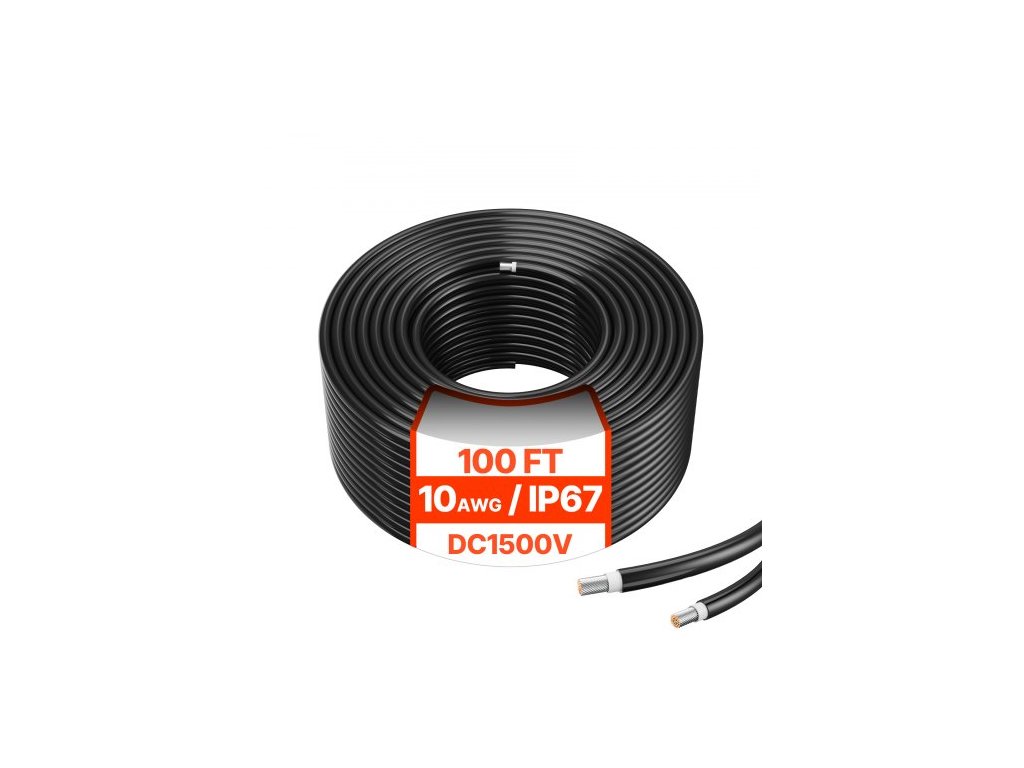 Prodlužovací kabel pro solární panely 30,48 m/100 stop, 6 mm2/10 AWG, prodlužovací vodič pro solární panely, 6 mm2, vodotěsný fotovoltaický kabel IP67 pro domácnosti, lodě a obytné solární panely, černý