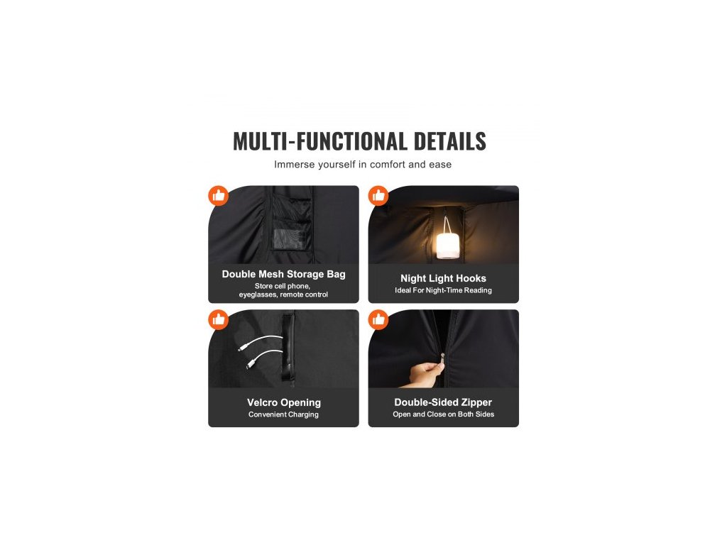 3dveřový stan s lůžkem, prodyšný, 70% zatemnění, s vláknitými tyčemi o tloušťce 0,37 palce, 1900 x 990 x 1190 mm, 3dveřový stan pro zajištění soukromí, nastavitelné ovládání světla, prostorný a pohodlný, rychlé a snadné nastavení, všestranné použití, praktické funkce, tvar: obdélníkový, barva: černá, číslo modelu: 140189, počet dveří: 3 síťované dveře, 2 dveře na dlouhé straně, 1 dveře na krátké straně, rozměry výrobku: 75" x 39" x 47" (1900 x 990 x 1190 mm), hmotnost netto: 9,3 lbs (4,2 kg)
