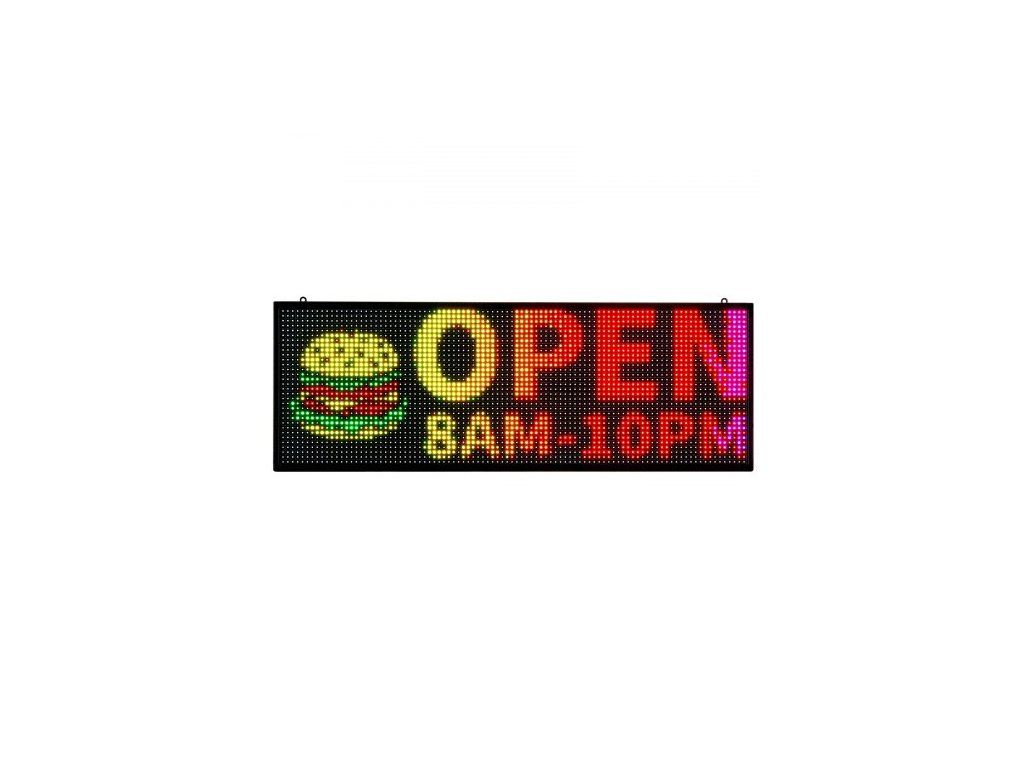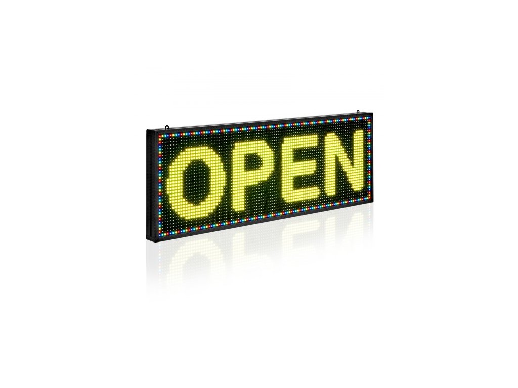 Programovatelný LED displej , P10 barevný flexibilní digitální rolovací panel, DIY textový vzor GIF displej, ovládání přes Bluetooth aplikaci, reklamní cedule pro obchod, 40x14 palců, vysoký jas, snadné ovládání, bohaté režimy zobrazení, vysoce kvalitní materiál, široké použití, pohodlná instalace, hlavní materiály: hliník, ABS, LED panel, číslo modelu: P10-3296RGB, hmotnost výrobku: 5,3 kg / 11,7 lbs, rozměry výrobku: 990x350x55 mm / 39x13,8x2,2 palce