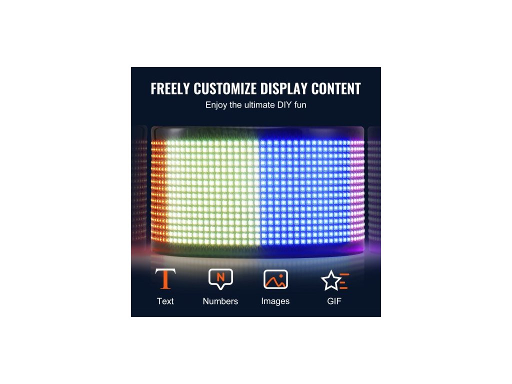 Programovatelný LED displej , P5 barevný LED rolovací panel, DIY zobrazovací deska s animací textu, Bluetooth ovládání přes aplikaci, reklama na obchod, 83,5x20cm, vysoký jas, funkce přizpůsobení, inteligentní ovládání přes aplikaci, stovky kombinovaných režimů, široké použití, pohodlná instalace a použití, rozteč pixelů: P5, hlavní materiály: FPC, LED korálky, silikon, číslo modelu: P32160, hmotnost výrobku: 1,05 kg / 2,3 lbs, rozměry výrobku: 835x200 mm / 32,9x7,9 palce