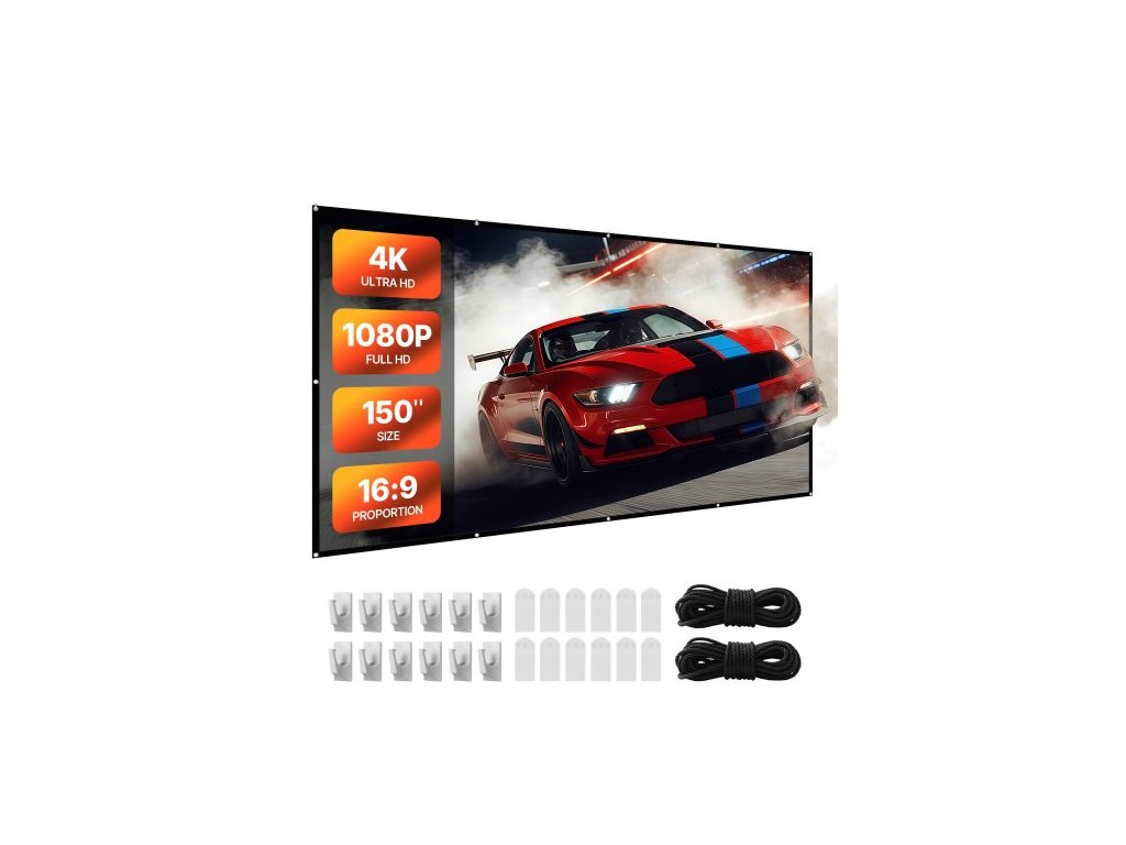 Projekční plátno , 3810 mm 16:9 4K 1080 HD projekční plátno, nástěnný projekční projektor s 12 háčky a oboustrannými páskami, přenosné filmové plátno pro rodinné kino, domácí kancelář