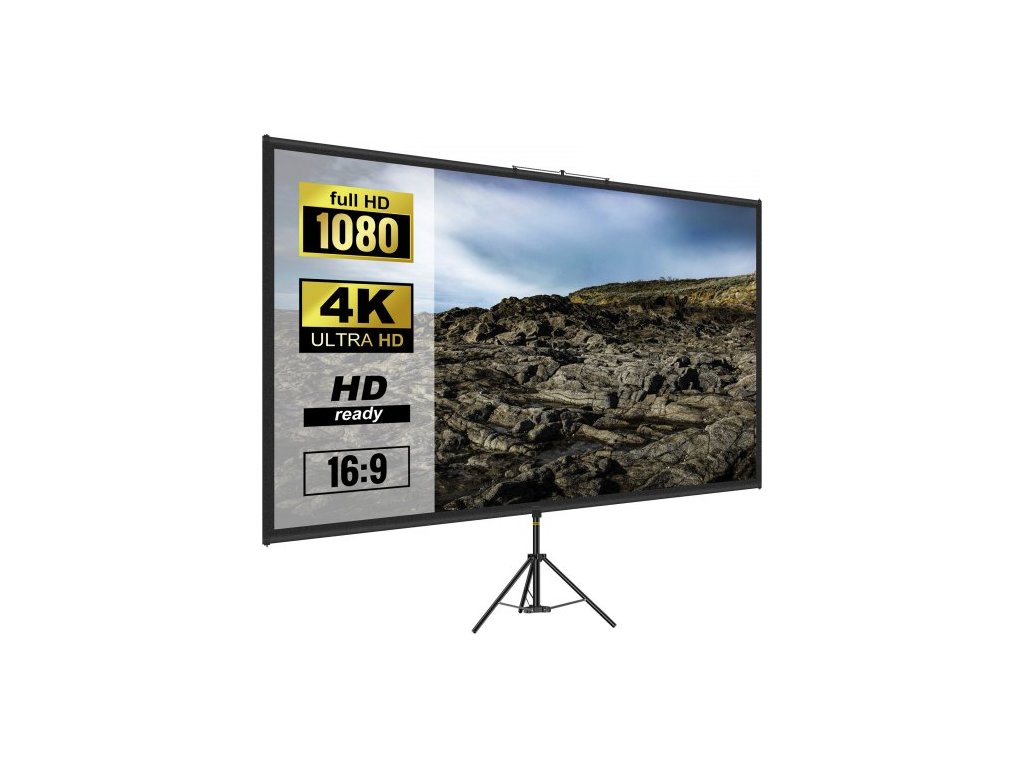 Projekční plátno s trojnožkou a stojanem, 100 palců, 16:9, 4K HD, projekční plátno, stojan, bez vrásek, výškově nastavitelné, přenosné plátno pro projektor uvnitř i venku, pro filmy, domácí kino, hraní her, kancelář