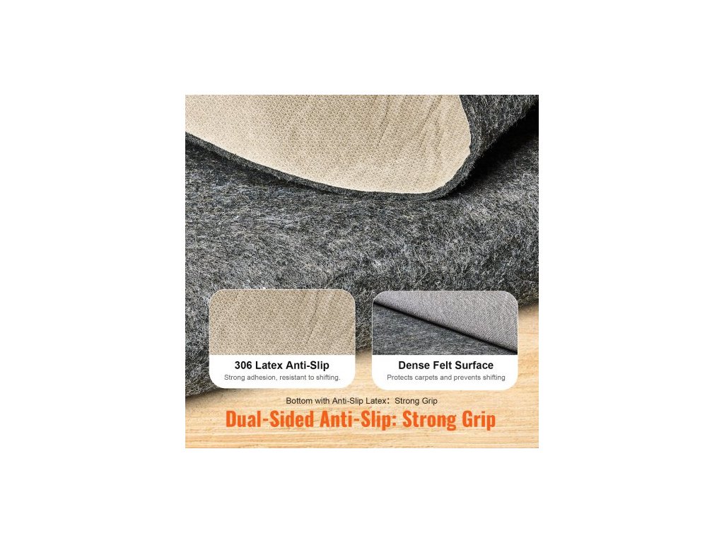 Protiskluzová podložka pod koberec , ochranná polstrovaná podložka pod koberec, 2'x8' (skutečný rozměr 7,87') - 1/4"tloušťka - dvojitý povrch - polyesterová plsť + latex, plocha 1-2m^2, polstrování koberce, bezpečné pro všechny podlahy, šedá