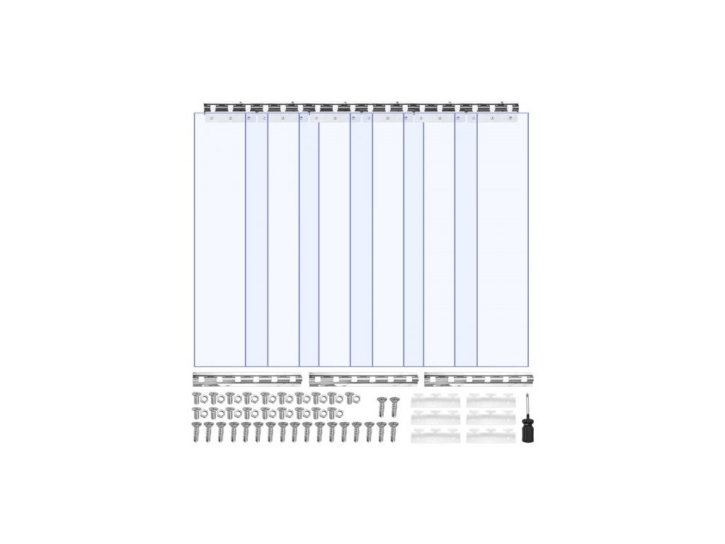 Průhledná PVC pásková clona , výška 2 m x šířka 0,9 m x tloušťka 2 mm, 6 ks páskových clonek do mrazáku, hladké vodotěsné plastové dveřní lišty pro skladová, mrazicí a garážová vrata