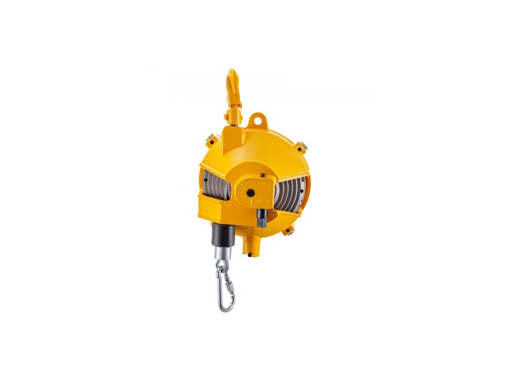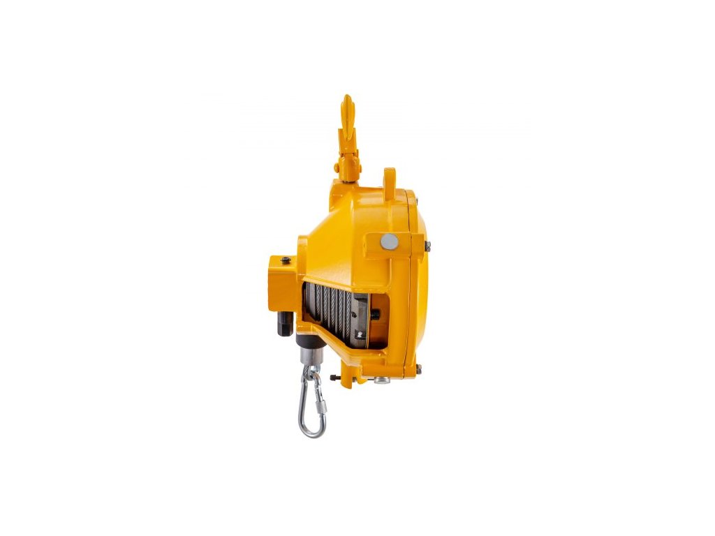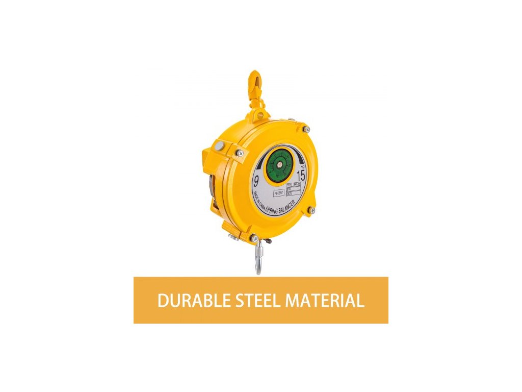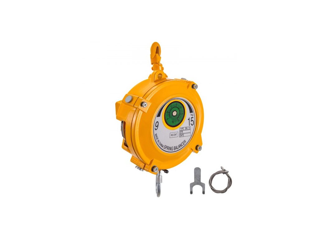 Pružinový vyvažovač 20-33 liber (9-15 kg) Výsuvný držák nářadí, vyvažovač nářadí o délce 1,5 m s hákem a ocelovým lanem, nastavitelný vyvažovač, navíječ, závěsné a upevňovací zařízení ve žluté barvě