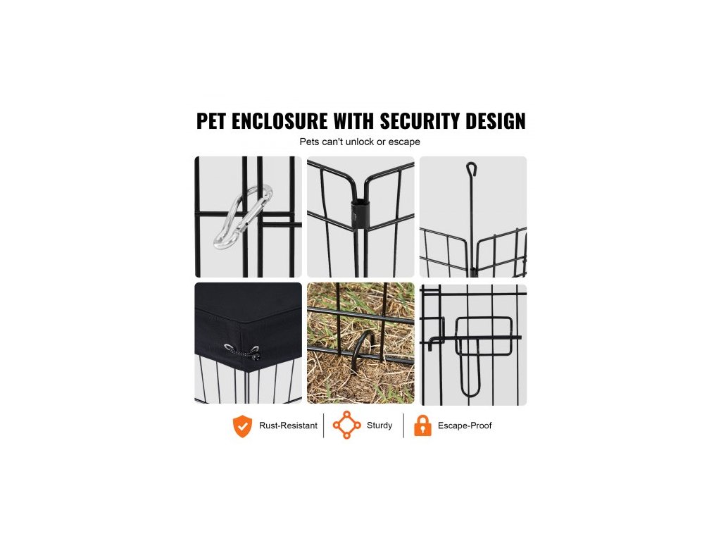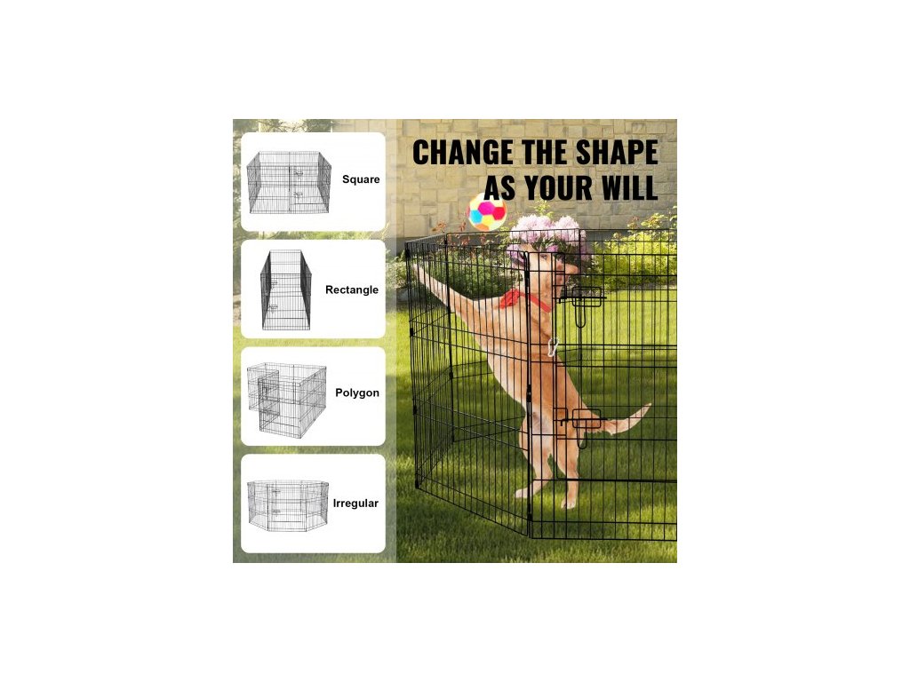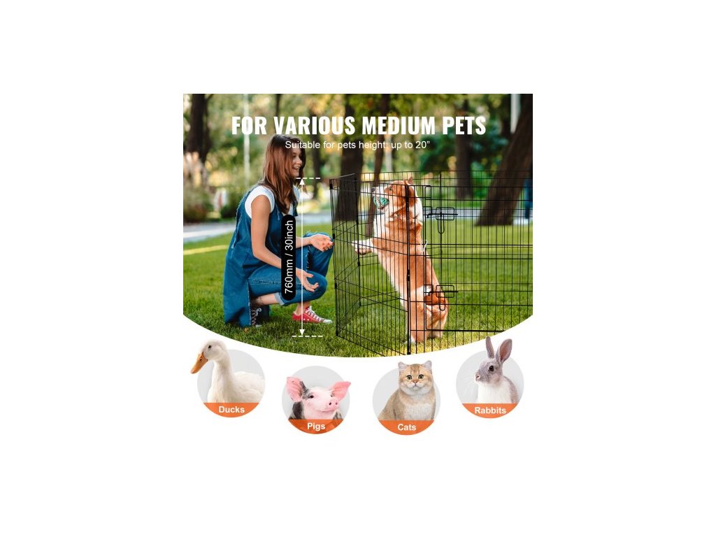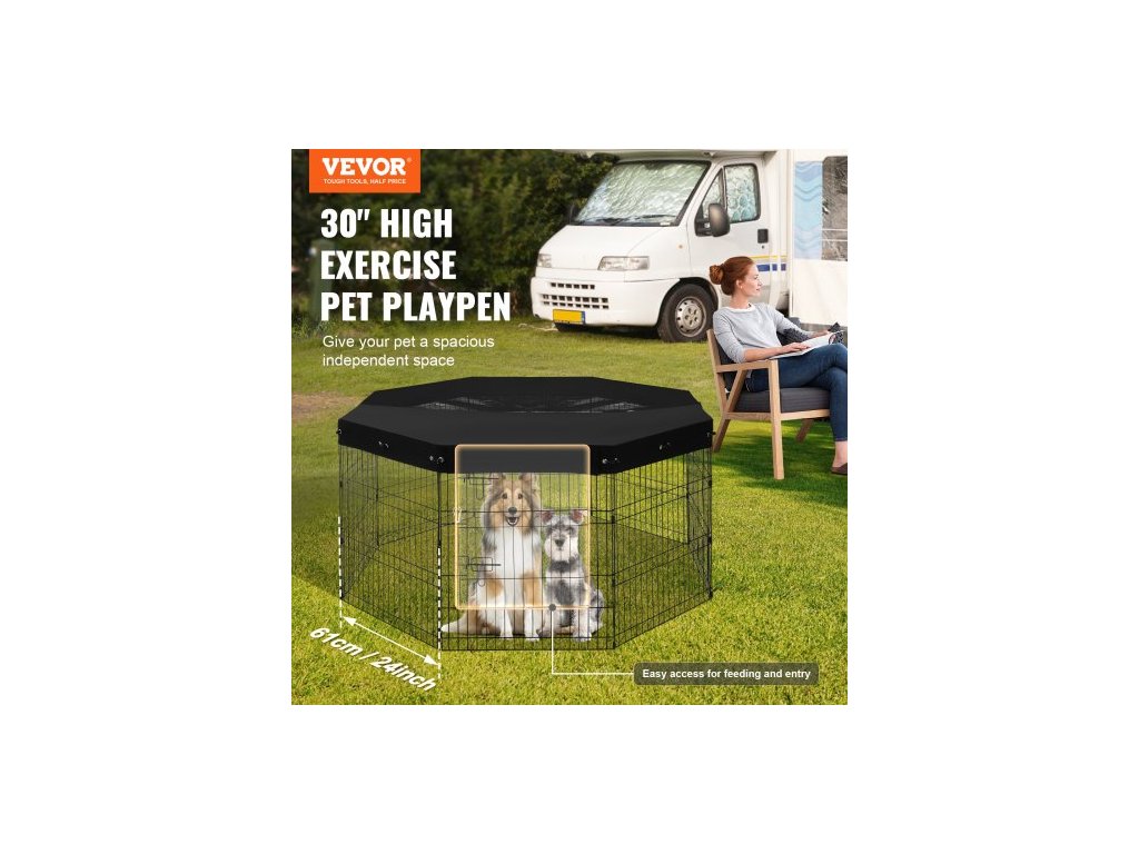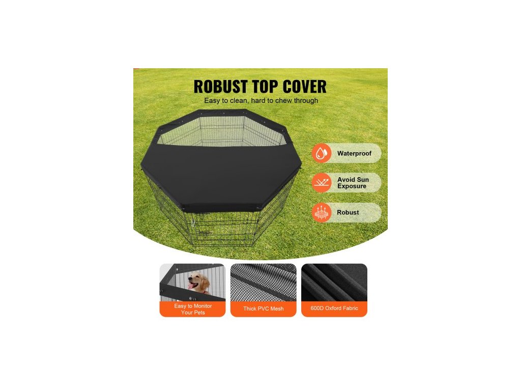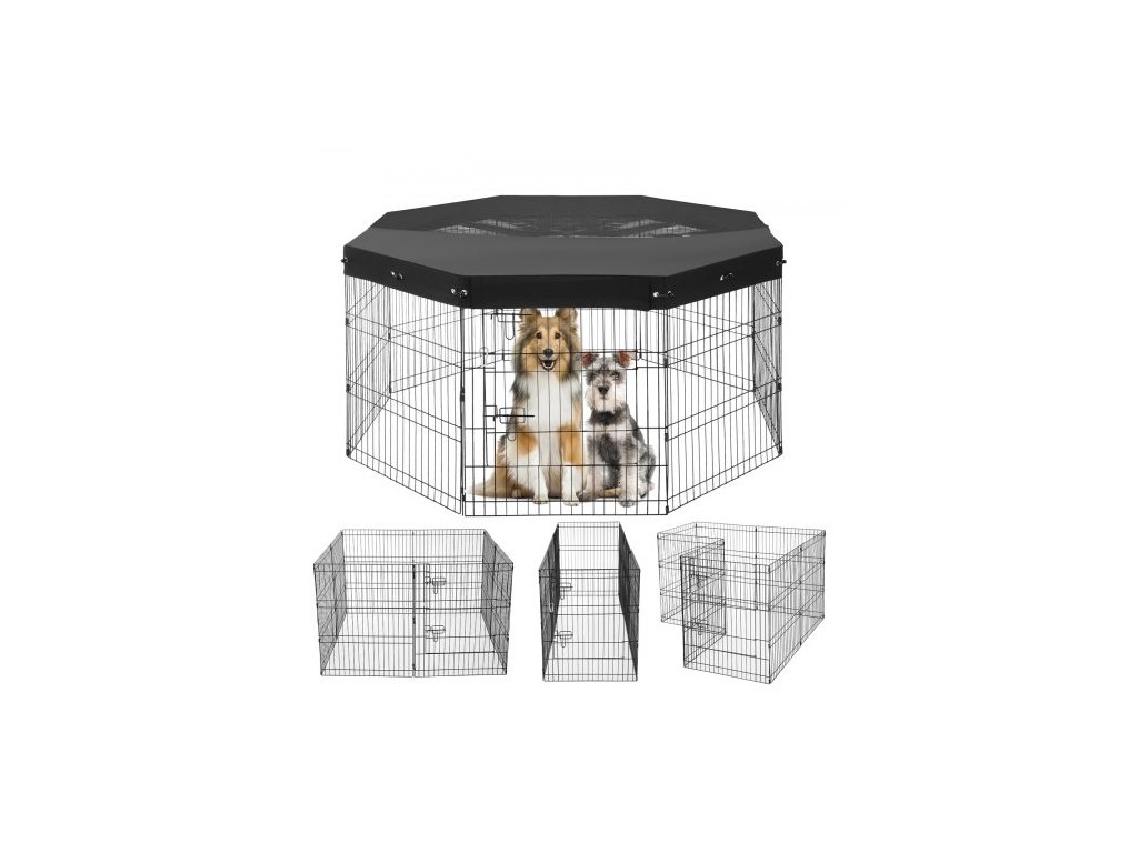 Psí ohrádka, 8 ks panelů 30"V x 24"Š, skládací kovová ohrada pro domácí mazlíčky, plot pro psy uvnitř i venku s dvířky, horní kryt z oxfordské látky 600D, ohrádka pro domácí mazlíčky, kočky a další malá zvířata