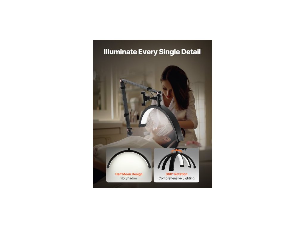 půlměsícové světlo pro kosmetičky, 2 v 1 LED stojací a stolní lampa na řasy pro prodlužování řas, klenutá lampa na řasy s držákem na telefon, dálkové ovládání, pro krásu, péči o pleť, obočí, tetování