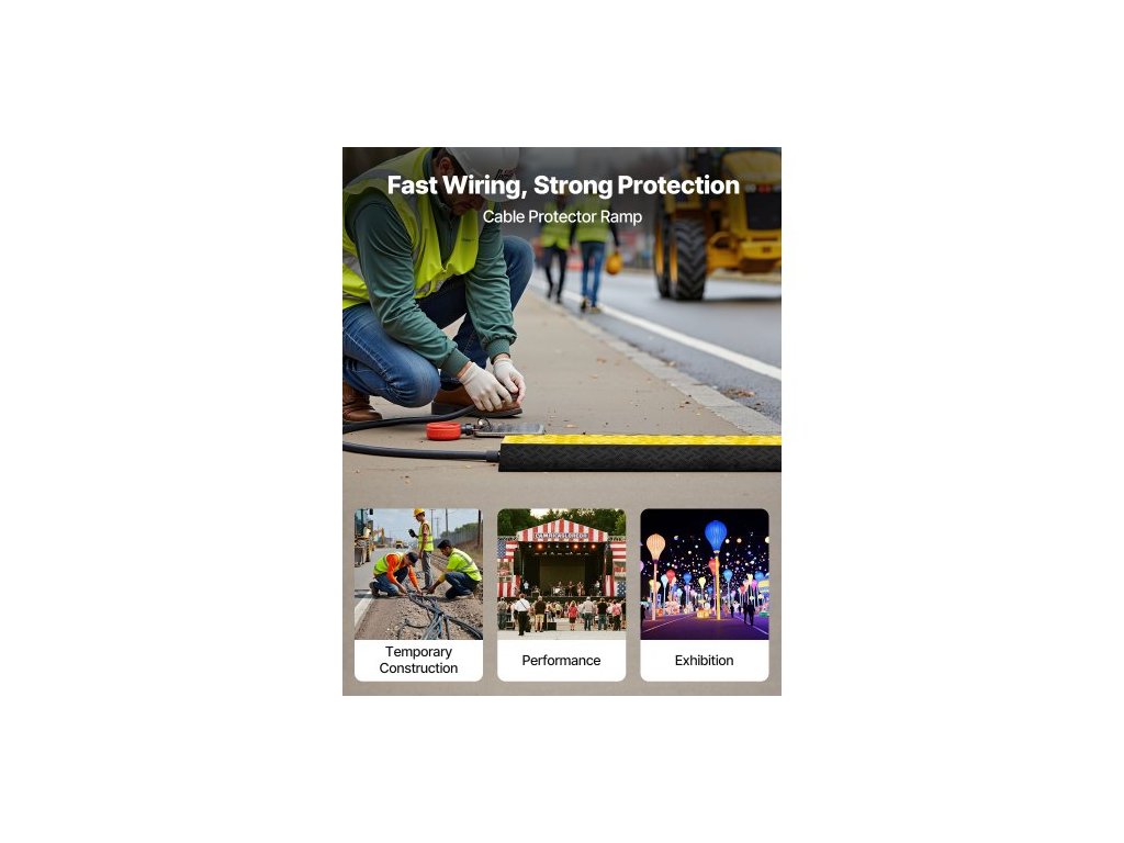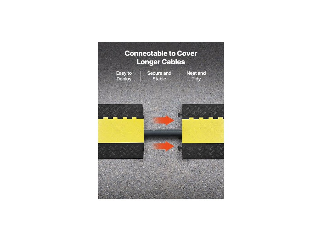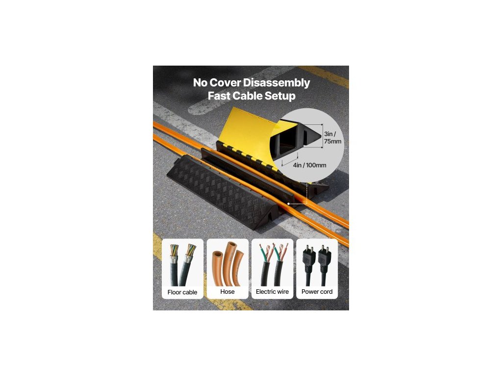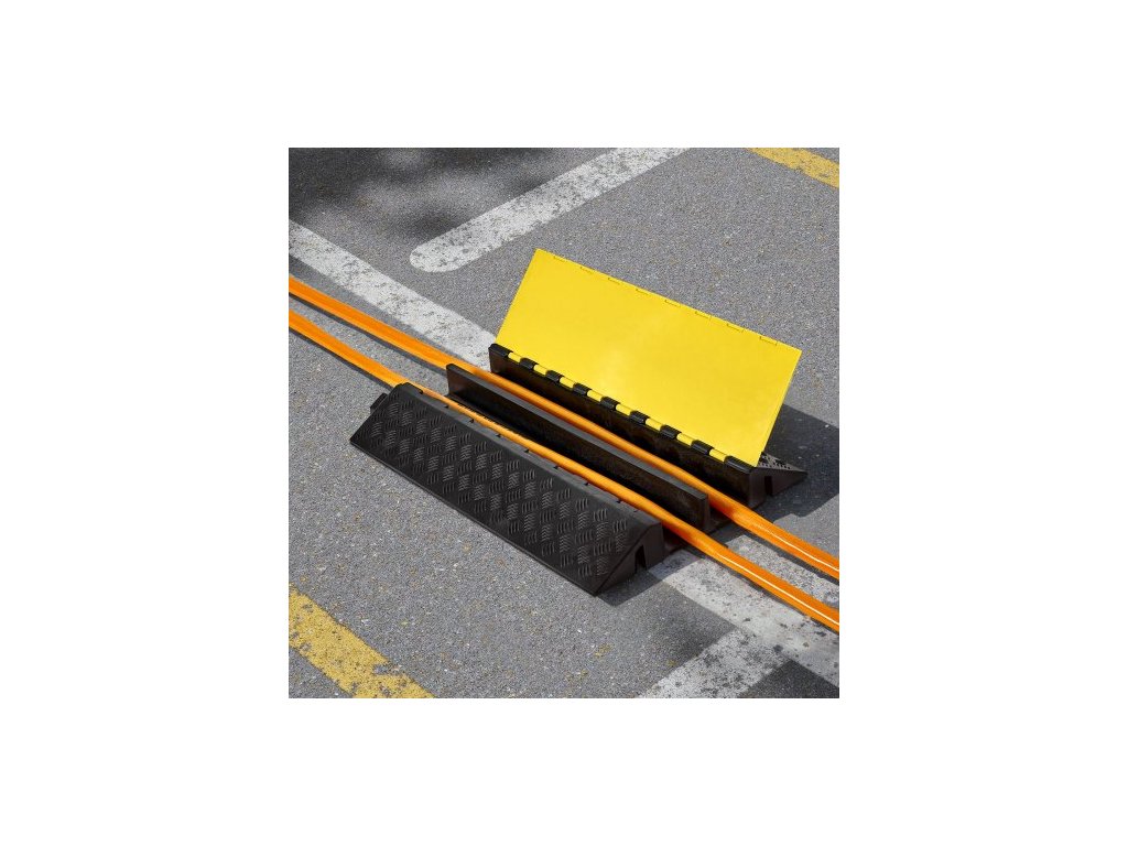 Rampa s ochranou kabelů, nosnost 9 979 kg/nápravu, 2kanálový kryt hadice z gumové šňůry a odolného materiálu, kanál 100 x 75 mm, zpomalovací prahy s odklápěcím horním krytem, pro vnitřní a venkovní použití, 1 balení